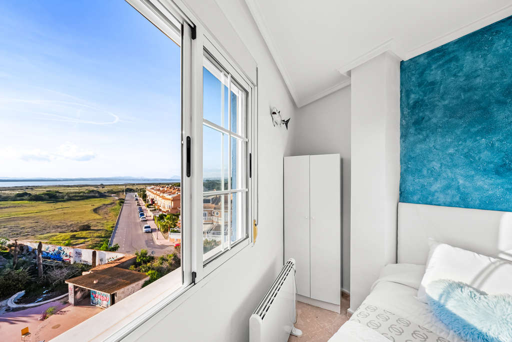 Apartamento en cuarta planta con terraza orientada al suroeste y vistas a la laguna salada de La Mata. Dispone de 2 dormitorios, 1 baño, armarios empotrados y una terraza de 6 m². Ubicado en un edificio con piscina comunitaria, a solo 200 metros de la playa.