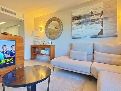 Este elegante apartamento de 2 dormitorios y 2 baños se encuentra en primera línea, ofreciendo impresionantes vistas abiertas al mar. Su diseño moderno y luminoso crea un ambiente acogedor y relajante, ideal tanto para vivir todo el año como para disfrutar de estancias vacacionales.