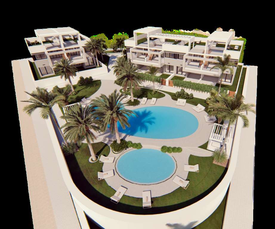 Ofrecemos a la venta un apartamento de 2 habitaciones en un nuevo complejo residencial ubicado cerca de la única Laguna Rosa en Torrevieja, Costa Blanca.El complejo consta de 136 bungalows de lujo construidos con materiales de primera calidad. En cada edificio, la empresa promotora realizó una instalación preliminar de sistemas de aire acondicionado y suelo radiante en los baños. Las zonas comunes incluyen 3 piscinas, un jacuzzi, un gimnasio, una pista de pádel, minigolf, parques infantiles e incluso un lugar para recargar vehículos eléctricos. Junto con los increíbles paisajes de la Laguna Rosa y el Mar Mediterráneo, que se abren desde cada bungalow, esto hace que vivir y relajarse aquí sea lo más cómodo.El apartamento consta de un amplio salón-comedor, una cocina abierta totalmente equipada, 2 dormitorios y 2 baños. Los bungalows en los pisos inferiores tienen dos grandes terrazas privadas, en el superior, un gran solárium.Muy cerca se encuentra toda la infraestructura necesaria, bares, restaurantes, farmacias, centros comerciales y las playas de azul más puro de la Costa Blanca, a solo unos minutos en coche.El aeropuerto más cercano es Alicante, a una hora en coche.
