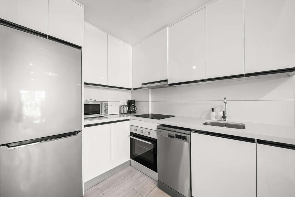 Apartamento moderno junto a la playa con vistas a la piscina.