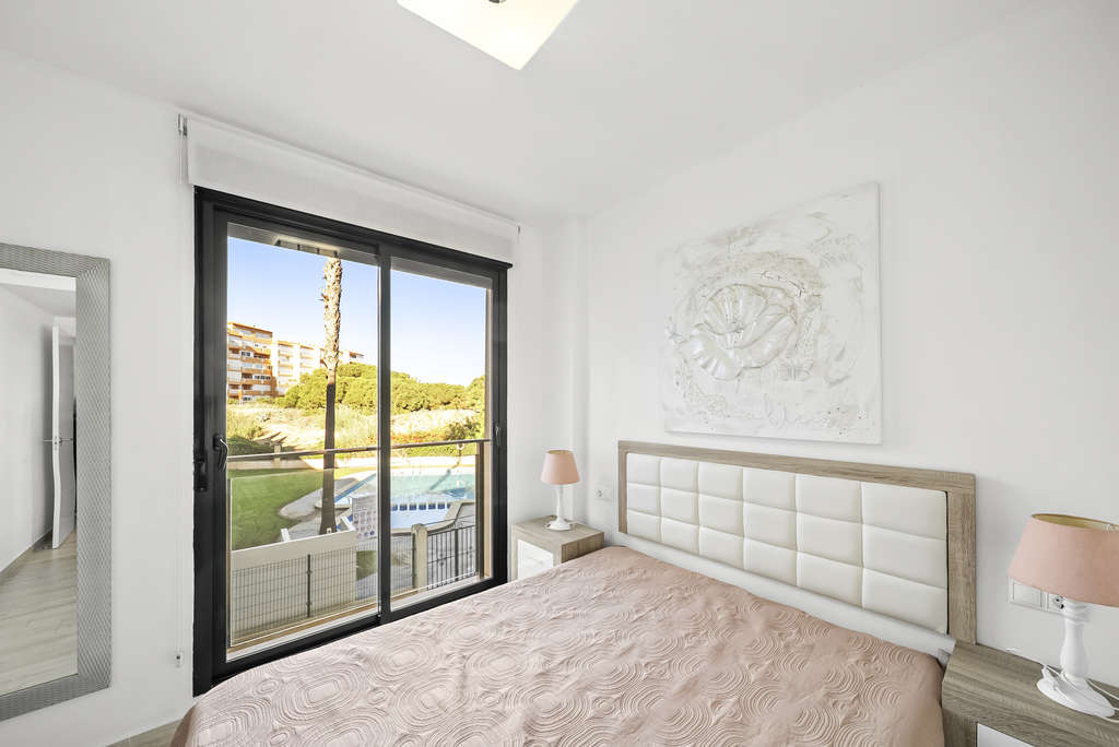 Apartamento con 2 dormitorios y 2 baños, ubicado a pocos metros de la playa de La Mata. Ofrece un salón amplio y luminoso con salida directa a la terraza. Se vende amueblado y equipado con electrodomésticos, además de sistema central de aire acondicionado.
