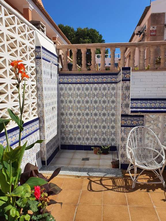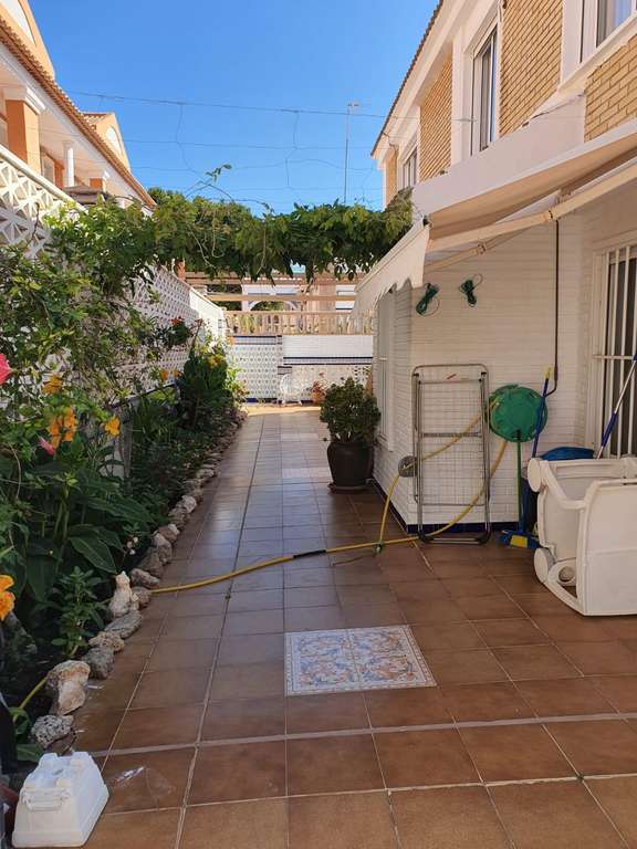 Bungalow en la Playa de la Mata, a Escasos 50 Metros del Mar, Planta Baja, con Vecino arriba, con Garaje Cerrado con 32M2.Consta de 3 Habitaciones, 2 con Baño en Suite, Armarios Empotrados en las Habitaciones, Ducha en el Jardín, para cuando se Viene de la Playa, con 200M2. De Parcela, 90M2. De Casa Construida, Total de Metros 233M2. Salón Comedor, Semi-Amueblado, Aire Acondicionado, Chimenea de Leña, Ventiladores, Cocina Independiente, Electrodomésticos, con Puerta de Salida al Amplio Jardín, Cristales Dobles, Rejas En Ventanas y Mosquiteras, Toldos, Barbacoa, Mobiliario de Jardín, Cerca de Servicios y Restaurantes, En Perfecto Estado Para Entrar a Vivir, Ideal para Alquiler Vacacional, La Vivienda se Vende de Cuerpo Cierto, Se llevarían objetos Personales.