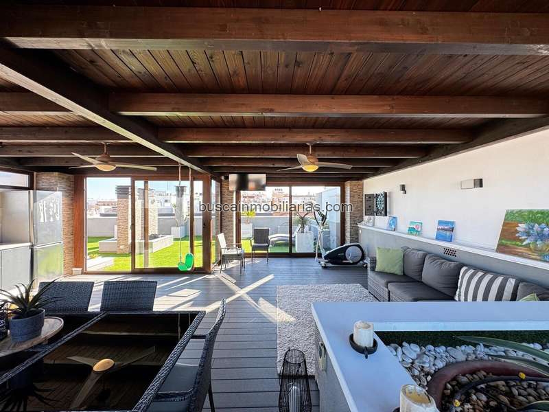 Las zonas exteriores destacan por su impresionante solárium privado de 141 m2, equipado con cocina de verano, zona barbacoa, espacio chill-out, pérgola decorativa y una elegante fuente ornamental. Además, dispone de una terraza de 65 m2 con toldos eléctricos, césped decorativo y plantas tropicales, creando un ambiente ideal para disfrutar del clima mediterráneo durante todo el año.