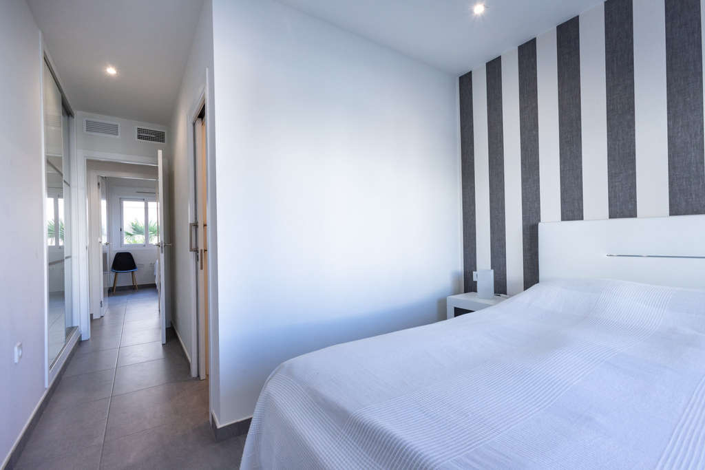 Luminoso bungalow en Aguas Nuevas. Este bungalow de una sola planta ofrece una distribución práctica y una ubicación privilegiada en Aguas Nuevas, Torrevieja. Sus amplias habitaciones, su patio privado y las comodidades modernas hacen de esta casa una excelente opción tanto para familias como para parejas. Distribución espaciosa y funcional. La propiedad cuenta con una cocina-sala de estar de planta abierta, tres dormitorios y dos baños. Los dormitorios están diseñados pensando en la funcionalidad y ofrecen amplios armarios. El salón se conecta a la perfección con el exterior a través de grandes puertas correderas de cristal que dan a una terraza cubierta. Amplio patio orientado al oeste. El patio privado ofrece amplio espacio para tomar el sol, que los niños jueguen o para celebrar reuniones. La orientación oeste garantiza hermosos momentos al aire libre, especialmente durante las impresionantes puestas de sol. Servicios modernos e instalaciones compartidas. El bungalow está equipado con aire acondicionado, lo que garantiza temperaturas interiores agradables durante todo el año. Además, la propiedad incluye una plaza de garaje. Los residentes de la comunidad tienen acceso a hermosas y amplias piscinas. Ubicación conveniente cerca de servicios. Aguas Nuevas ofrece todos los servicios diarios a poca distancia: las tiendas están a solo 300 metros. Hay una escuela justo enfrente. El Hospital Quirón está a unos 800 metros. El polideportivo y el Parque Antonio Soria están a unos 500 metros. La playa está a unos 2 kilómetros. Conviértalo en la casa de sus sueños. Este bungalow combina interiores modernos, un patio privado y una ubicación excelente. ¡Venga a verlo y encuentre la casa de sus sueños en Aguas Nuevas!