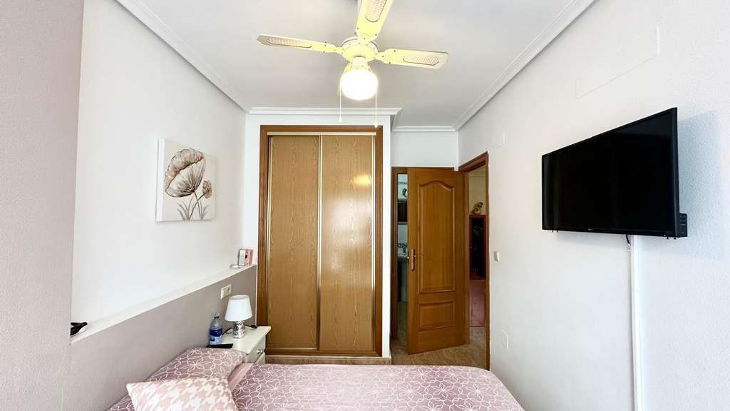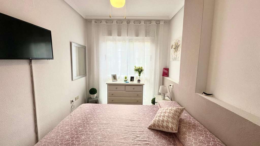 Se presenta este atractivo apartamento en primera planta, ubicado en la reconocida Avenida Habaneras de Torrevieja, una de las arterias principales de la ciudad y a tan solo 300 metros de la playa. Su localización privilegiada lo convierte en una opción ideal tanto para residencia habitual como para segunda vivienda o inversión, ya que permite disfrutar de la cercanía al mar y, al mismo tiempo, de todos los servicios esenciales: supermercados, restaurantes, transporte público y zonas de ocio. La vivienda cuenta con una distribución muy funcional que garantiza comodidad y privacidad. Dispone de dos habitaciones amplias, perfectamente iluminadas, y dos cuartos de baño completos, uno de ellos en suite, lo que aporta un valor añadido en confort. Esta característica lo convierte en un hogar práctico para familias, parejas o para recibir invitados con total independencia. La orientación sur es otro de los grandes atractivos de este apartamento, ya que asegura luminosidad natural durante prácticamente todo el día, generando una atmósfera cálida y acogedora. El salón-comedor, equipado con aire acondicionado, se presenta como el corazón de la vivienda: un espacio cómodo, versátil y pensado para el disfrute tanto en verano como en invierno. Desde él se accede a una terraza acristalada que ofrece múltiples posibilidades, ya sea como rincón de lectura, comedor adicional o zona de relax, al tiempo que amplía la superficie útil de la vivienda. La cocina es independiente y se encuentra equipada con una práctica galería o patio interior destinado a zona de lavado y tendedero. Este detalle resulta especialmente útil para mantener el orden y la funcionalidad en el día a día. El complejo residencial donde se encuentra el apartamento ofrece piscina comunitaria, situada estratégicamente en la primera planta, lo que significa que se puede acceder prácticamente desde la puerta de casa. Esto añade comodidad y convierte esta propiedad en un lugar ideal para disfrutar de los días soleados en un entorno seguro y familiar. En definitiva, se trata de un apartamento que reúne todas las condiciones para convertirse en un hogar completo: proximidad a la playa, buena orientación, excelentes zonas comunes, distribución práctica y ubicación estratégica en una de las áreas más valoradas de Torrevieja. Una oportunidad para quienes buscan calidad de vida a escasos pasos del mar.