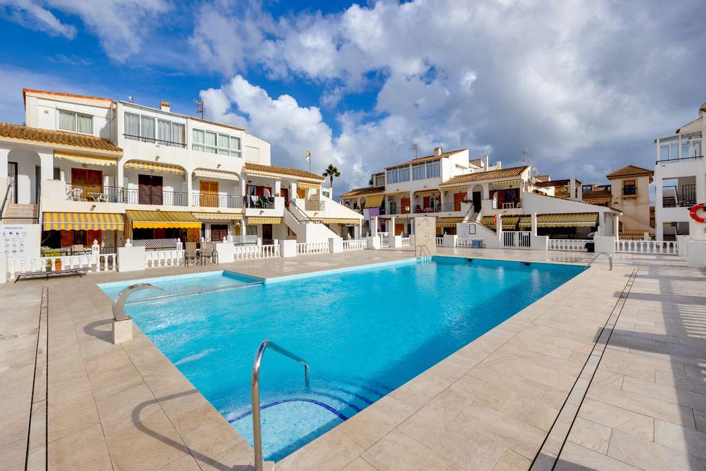 Las zonas exteriores son una gran ventaja: el apartamento cuenta con balcón , terraza con vistas a la piscina y un patio que también sirve como comedor al aire libre . La zona común ofrece una atractiva piscina, además de una piscina infantil . El aparcamiento está incluido .