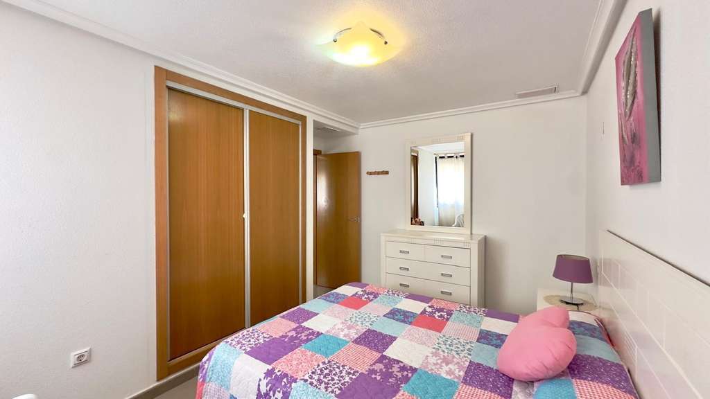 Apartamento acogedor y funcional de 2 dormitorios y 1 baño en una de las calles más céntricas y demandadas de Torrevieja, la conocida calle Apolo, a un agradable paseo de la playa y rodeado de todos los servicios durante todo el año. Entorno y ubicación Vivir en calle Apolo significa disfrutar del auténtico centro de Torrevieja, en una zona urbana consolidada, bien comunicada y con una amplia oferta de comercios, supermercados, bancos, cafeterías y restaurantes a escasos metros de casa. Las principales arterias comerciales, como las calles cercanas al paseo marítimo y la Plaza de la Constitución, se encuentran a pocos minutos caminando, lo que permite realizar las gestiones del día a día sin necesidad de utilizar el coche. La playa del Cura y el puerto deportivo están también a un corto paseo, convirtiendo este apartamento en una opción ideal para quienes desean combinar vida urbana y cercanía al mar en la Costa Blanca. Edificio y ambiente residencial El apartamento se integra en un edificio de estilo contemporáneo típico del centro de Torrevieja, con portal cuidado y ambiente principalmente residencial, donde conviven familias, parejas jóvenes y residentes extranjeros que han elegido la ciudad por su clima y calidad de vida. La calle Apolo está formada por bloques de viviendas de varias plantas, con locales en planta baja y viviendas en altura, lo que genera un entorno vivo durante el día pero tranquilo por las noches, perfecto para uso habitual o como segunda residencia. Se trata de una zona llana y caminable, con calles asfaltadas y trazado urbano ordenado, que facilita el acceso a personas de todas las edades y convierte los desplazamientos diarios en paseos cómodos y agradables. Distribución interior Al entrar a la vivienda, un recibidor da paso a la zona de día, donde se articula el salón–comedor en torno a la cocina americana, creando un único espacio amplio y práctico que aprovecha al máximo los metros disponibles. La distribución separa de forma natural la parte social de la vivienda de la zona de descanso, donde se encuentran los dos dormitorios y el baño, lo que aporta privacidad tanto para una familia como para quienes quieran combinar estancia y teletrabajo. El diseño interior responde al concepto de apartamento urbano funcional, con pasillos reducidos y estancias bien proporcionadas, pensado para ofrecer comodidad en el uso diario sin renunciar a zonas diferenciadas para descansar y recibir visitas. Salón comedor El salón comedor es el corazón de la vivienda, un espacio luminoso que recibe la luz natural procedente del balcón y que se presta tanto a momentos de relax como a reuniones con amigos y familiares. Su planta rectangular facilita la colocación de un cómodo sofá frente a la zona de televisión, así como una mesa de comedor para varios comensales, creando un ambiente versátil que se adapta a diferentes estilos de decoración, desde los más modernos a los más mediterráneos. La conexión visual directa con la cocina americana y el acceso al balcón refuerzan la sensación de amplitud, convirtiendo este ambiente en un espacio fluido donde la vida diaria transcurre con naturalidad, desde desayunos tranquilos hasta veladas más sociales. Cocina americana equipada La vivienda dispone de una cocina americana equipada que se integra en la zona de día, ofreciendo una solución cómoda y moderna para quienes valoran la practicidad y el contacto directo con el resto de la casa mientras cocinan. Este tipo de cocina facilita la comunicación con el salón, permite atender a invitados o familiares mientras se preparan las comidas y contribuye a que la luz natural procedente del balcón llegue también hasta la zona de trabajo. La disposición del mobiliario y la encimera está pensada para aprovechar el espacio, con zona de cocción, preparación y almacenaje organizada, ideal tanto para un uso vacacional como para quienes piensan residir todo el año en el apartamento.