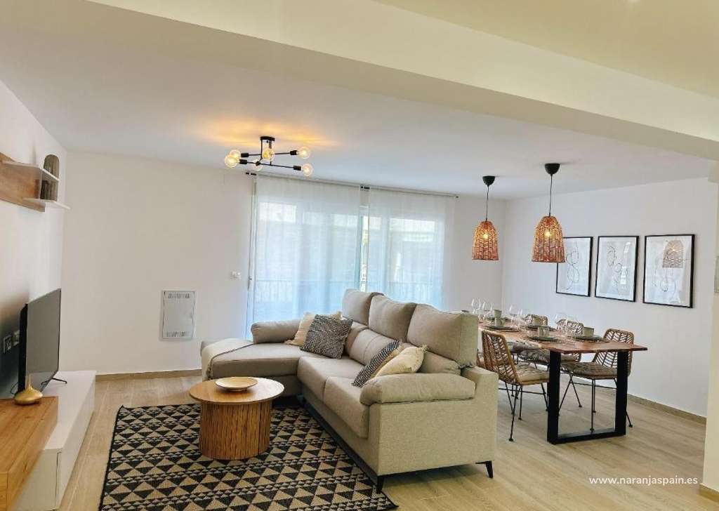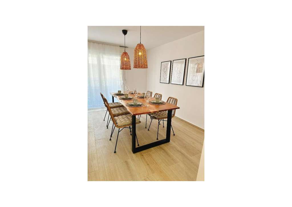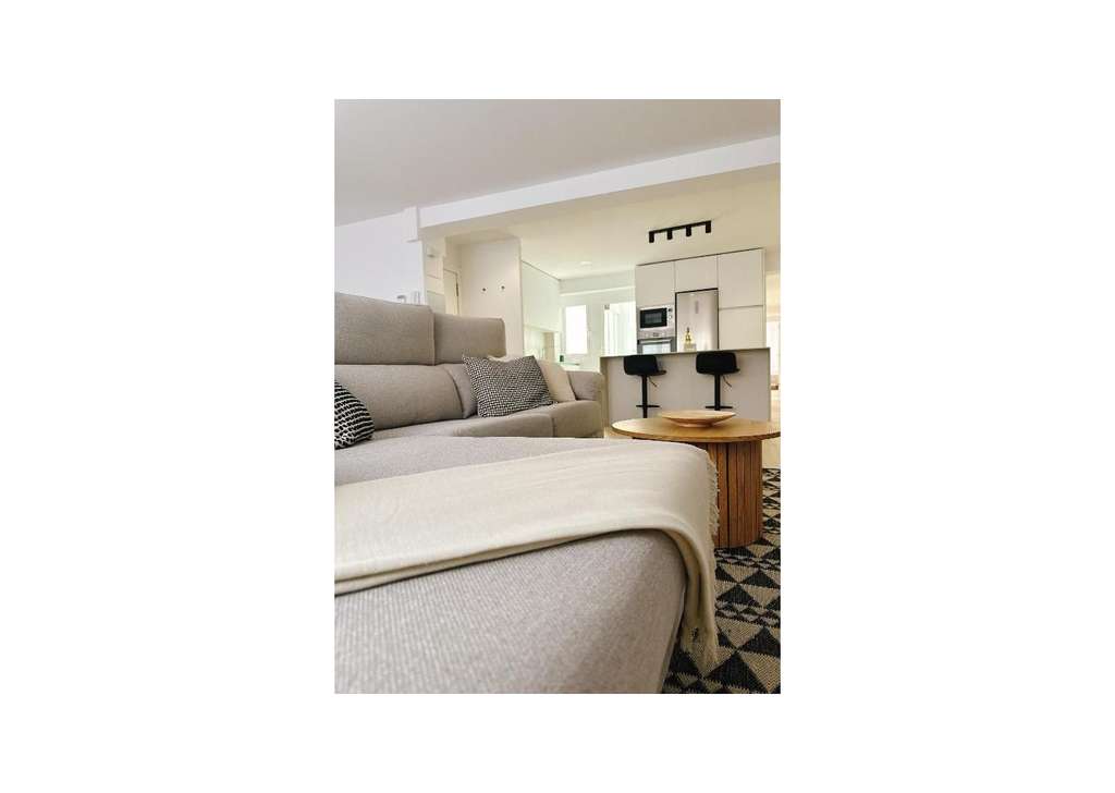 El salón y la cocina forman un espacio abierto, luminoso y funcional. Todos los muebles y electrodomésticos están en uso desde junio de 2024, prácticamente nuevos.