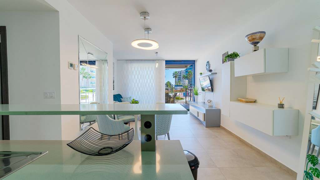 Este nuevo apartamento cuenta con una amplia terraza con impresionantes vistas. Dispone de 2 dormitorios con camas grandes, 2 baños, un amplio salón y una cocina americana.