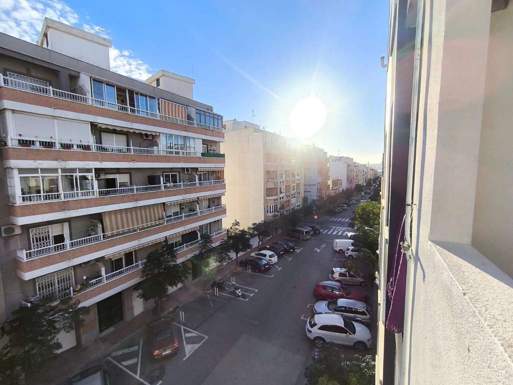 Vivienda en tercera planta de 76 m2 construidos, distribuida en salón comedor con acceso al balcón, cocina independiente, galería, un baño completo y dos dormitorios.~En origen contaba con dos baños, y uno de ellos se adaptó como galería, por lo que puede recuperarse fácilmente si se desea.~~Ubicado en una zona tranquila y bien comunicada de Torrevieja, próxima a todos los servicios. Destaca su orientación sur, que aporta luminosidad y confort durante todo el día.~Una opción ideal tanto como residencia habitual como inversión.