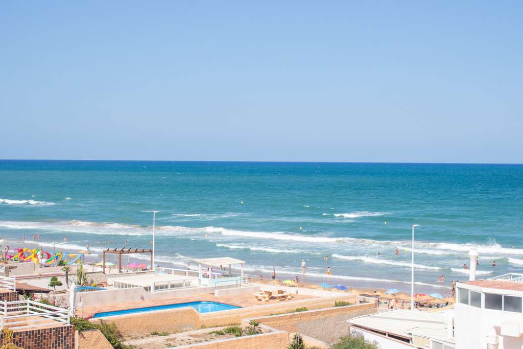 Desde el salón se disfruta de vistas despejadas al relajantemar, lo que aporta una gran sensación de amplitud y luminosidad. El edificio forma parte de un residencial privado con piscina comunitaria y zonas verdes, en un entorno tranquilo y cuidado.