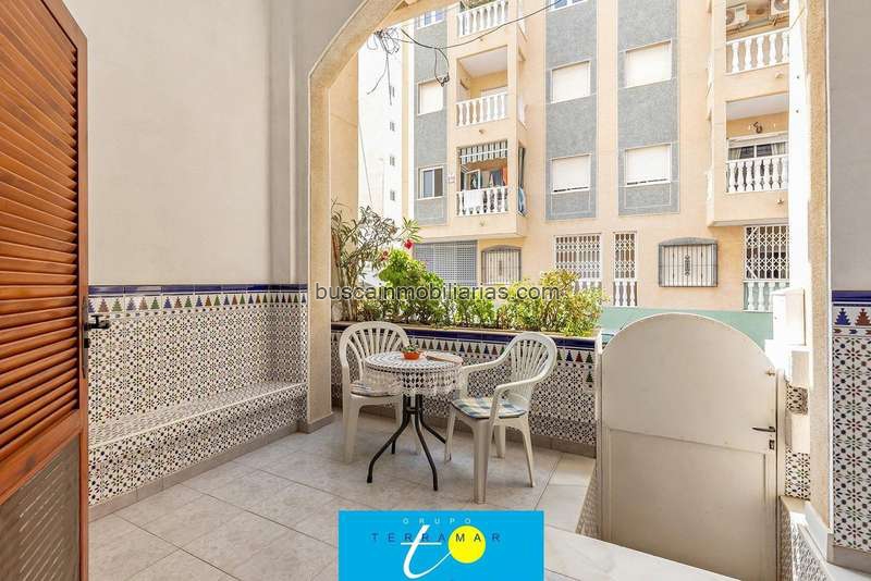 Se vende interesante planta baja situada en una de las zonas más demandadas de Torrevieja, a solo 500 metros de la Playa de los Locos y en un entorno muy céntrico, con todos los servicios a pocos minutos a pie. La vivienda cuenta con una superficie construida de 93 metros cuadrados, distribuidos de forma funcional en dos dormitorios, un cuarto de baño completo, una cocina independiente de buen tamaño y una zona de estar cómoda y luminosa. Se vende amueblada, lo que permite instalarse de inmediato sin necesidad de realizar reformas. Uno de los principales atractivos de esta propiedad son sus dos patios exteriores. En la parte delantera se encuentra un patio de tamaño estándar, ideal como acceso o pequeño espacio de descanso. En la parte trasera, la vivienda dispone de un amplio patio con gran potencial, perfecto para habilitar una zona de comedor exterior, jardín o incluso espacio de almacenaje adicional. Además, en esta zona se incluye una barbacoa de obra, lo que convierte el patio en un lugar ideal para reuniones al aire libre y momentos de ocio. Gracias a su orientación sur, la vivienda disfruta de una excelente entrada de luz natural durante gran parte del día, lo que aporta calidez y luminosidad a todos los ambientes. Esta propiedad reúne características muy valoradas: buena ubicación, espacios exteriores amplios y aprovechables, y cercanía a la playa, lo que la convierte en una opción ideal tanto como residencia habitual, vivienda vacacional o inversión de alquiler.