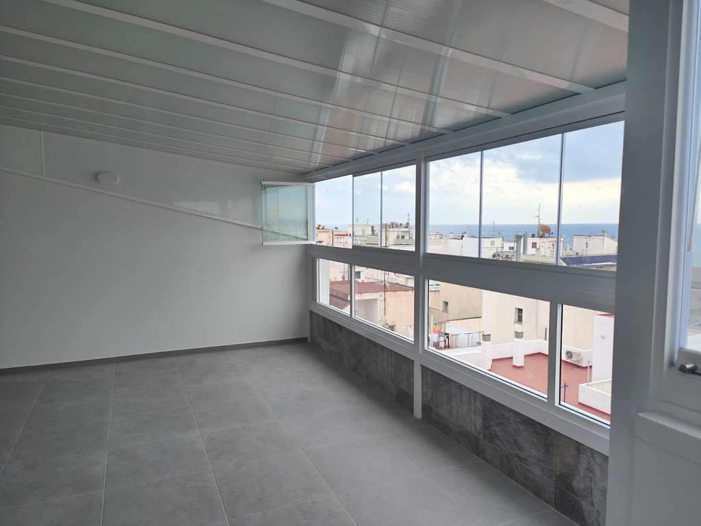 Apartamento reformado de 2 dormitorios con amplia terraza – 8.ª planta con ascensor. Este apartamento reformado se encuentra en la 8.ª planta de un moderno edificio con ascensor en una ubicación privilegiada. Con una superficie total de 74 m², ofrece una distribución luminosa y espaciosa, ideal para una vida cómoda o como una atractiva inversión de alquiler. Cuenta con un salón-comedor diáfano de 24 m² con cocina, dos dormitorios (6,7 m² y 9 m², uno con acceso a la terraza), un moderno baño (4,8 m²) y un lavadero (4 m²). La terraza acristalada de 26 m² es perfecta para disfrutar del aire libre durante todo el año. El apartamento se vende sin amueblar, lo que le da la libertad de decorar a su gusto. Además cuenta con armarios empotrados, aire acondicionado y doble orientación (norte y sur) para una excelente luz natural y ventilación.Características principales:74 m² construidos, 48 m² útiles2 habitaciones1 bañoTerraza acristalada de 26 m²8ª planta con ascensorAire acondicionadoArmarios empotradosOrientación norte-surEdificio construido en 2005Accesibilidad parcial para personas con movilidad reducida¡Una excelente oportunidad en una zona bien comunicada con todos los servicios cerca!