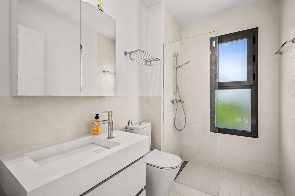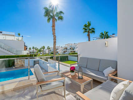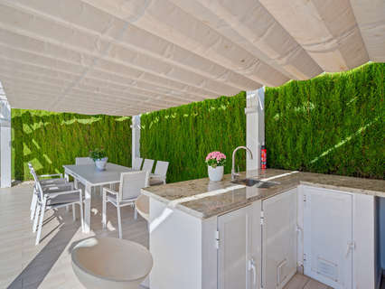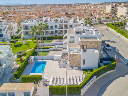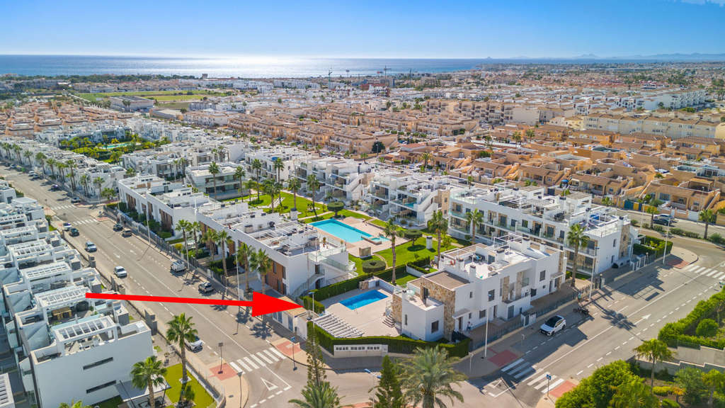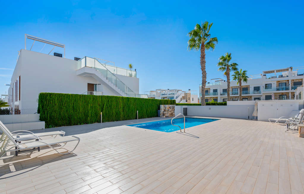 Bienvenido a esta hermosa y moderna casa adosada esquinera que combina estilo, comodidad y funcionalidad a la perfección. Aquí encontrará una casa que destaca, tanto por su cuidada distribución como por su parcela única con mucha privacidad. La casa ofrece 3 dormitorios y 2 baños modernos, todo con materiales luminosos y acogedores. La casa se ve impecablemente cuidada y lista para entrar a vivir, así que puede entrar a vivir y empezar a disfrutar de la vida bajo el sol. Bajo la casa encontrará un sótano completo, aún sin usar, perfecto como futuro gimnasio, bodega, cine en casa o simplemente espacio de almacenamiento adicional. La zona exterior: puro lujo. En el exterior, le espera una fantástica zona privada al aire libre, diseñada para relajarse y socializar. La piscina privada se puede climatizar y cuenta con un entrenador de natación integrado, ideal para hacer ejercicio durante todo el año. Además, hay una zona de estar con chorros de aire (semi-jacuzzi), donde podrá relajarse y disfrutar de las burbujas después de un baño. También hay una ducha exterior para refrescarse si no prefiere darse un chapuzón en la piscina. La parcela cuenta con un precioso jardín, y la gran pérgola enmarca una deliciosa cocina exterior con fregadero y nevera, perfecta para las tardes de verano con familiares y amigos. Los armarios adicionales en el jardín ofrecen un práctico espacio para guardar cojines y otros utensilios. Comodidad y conveniencia: La propiedad incluye dos plazas de aparcamiento en el garaje subterráneo y un trastero de aprox. 6,6 m². Aquí encontrará todo lo necesario, tanto para el día a día como para las vacaciones. Ubicación: La casa se encuentra en una zona tranquila y atractiva, cerca de todos los servicios: supermercados, cafeterías, restaurantes y tiendas. Su orientación sureste garantiza sol la mayor parte del día, y la zona es conocida por su agradable clima y ambiente relajado. En resumen: Una moderna casa adosada esquinera con piscina privada climatizada, fantástica zona exterior y un gran potencial en el sótano, perfecta para quienes sueñan con comodidad, calidad y un estilo de vida sureño con un toque de lujo.