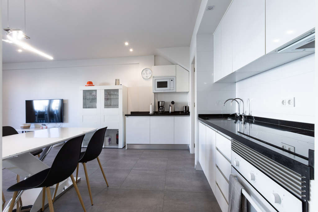La propiedad cuenta con una cocina-sala de estar de concepto abierto, tres dormitorios y dos baños. Los dormitorios están diseñados pensando en la funcionalidad y ofrecen amplio espacio de armario. La sala de estar se conecta fluidamente con el exterior a través de grandes puertas corredizas de vidrio que dan a una terraza cubierta.
