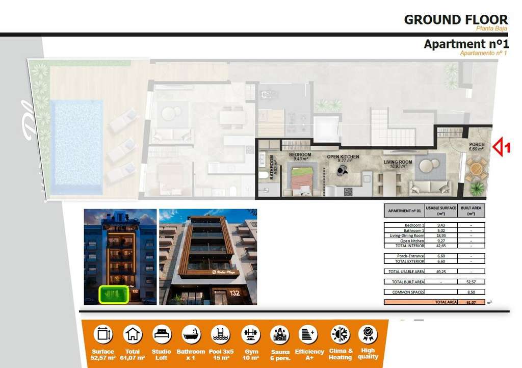 Todos los apartamentos están construidos con materiales y acabados de alta calidad, lo que garantiza tanto el confort como la durabilidad. Las características incluyen: