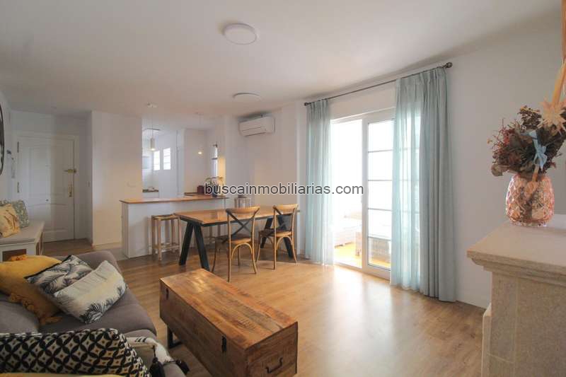Dispone de tres dormitorios exteriores y dos baños completos, ideales para familias o para quienes buscan espacio adicional. La moderna cocina abierta al salón, renovada hace menos de dos años, ofrece un ambiente acogedor y funcional. El suelo de tarima añade calidez y un toque elegante a cada estancia.