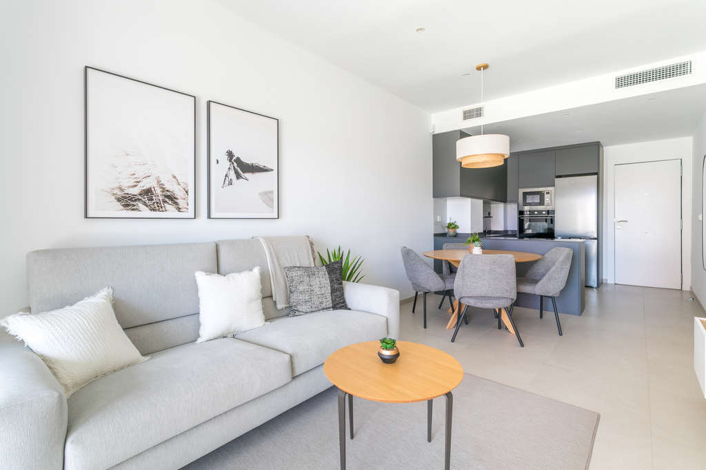 Ubicado en la hermosa localidad de Torrevieja, este conjunto residencial ofrece una variedad de opciones de vivienda que se adaptan a diferentes necesidades y estilos de vida. Con un total de 94 propiedades, los residentes pueden elegir entre apartamentos, plantas bajas y áticos, todos diseñados para maximizar el confort y la funcionalidad. La proximidad al mar, a solo 1 km de distancia, garantiza vistas impresionantes y un ambiente costero inigualable. Además, la cercanía al aeropuerto, a solo 40 km, facilita el acceso y la movilidad para aquellos que viajan con frecuencia.EXTERIORESEl entorno exterior de este residencial en Torrevieja está cuidadosamente diseñado para ofrecer un estilo de vida relajado y en contacto con la naturaleza. Las viviendas cuentan con terrazas y jardines privados, ideales para disfrutar del clima mediterráneo. Los áticos disponen de solárium, proporcionando un espacio adicional para el ocio al aire libre y la contemplación de las vistas al mar. La comunidad también ofrece un garaje comunitario, asegurando comodidad y seguridad para los vehículos de los residentes.INTERIORESLas viviendas están equipadas con características modernas que garantizan un alto nivel de confort. Los suelos de porcelana aportan un toque de elegancia y durabilidad, mientras que las persianas eléctricas y los electrodomésticos integrados facilitan la vida diaria. Los armarios empotrados optimizan el espacio de almacenamiento, manteniendo el orden y la funcionalidad. Las opciones de distribución incluyen viviendas de 2 y 3 dormitorios, con 2 o 3 baños, adaptándose a diferentes tamaños de familia y preferencias personales.ZONAS COMUNESLas zonas comunes del residencial están diseñadas para fomentar un sentido de comunidad y bienestar entre los residentes. El complejo cuenta con amplias áreas ajardinadas que ofrecen un entorno verde y sereno para pasear o relajarse. La piscina comunitaria es un punto de encuentro ideal para disfrutar del sol y refrescarse durante los cálidos días de verano. Además, el garaje comunitario proporciona un espacio seguro y conveniente para el estacionamiento de vehículos.TORREVIEJATorrevieja, en la Costa Blanca, es un popular destino turístico conocido por sus amplias playas, su clima mediterráneo y su ambiente vibrante. Atrae a turistas por sus hermosas playas de arena fina, como la Playa del Cura o la Playa de la Mata, ideales para el baño y los deportes acuáticos. El turismo en Torrevieja se centra en sus playas, su animado paseo marítimo y su oferta de entretenimiento nocturno. Además, destaca por su laguna salada, las Salinas de Torrevieja, conocidas por sus propiedades terapéuticas y por ser un entorno único. El estilo de vida en Torrevieja es dinámico y orientado al mar. Los residentes y visitantes disfrutan de una vida costera activa, participando en actividades acuáticas, festivales locales y una animada vida nocturna. Torrevieja ofrece un ambiente costero vibrante para aquellos que buscan disfrutar del mar, las playas y una vida animada en la Costa Blanca, fusionando el turismo playero con una amplia oferta de ocio y entretenimiento.