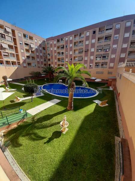 El edificio cuenta con acceso a piscina comunitaria y zonas verdes. Su ubicación es clave: muy cerca del Parque de las Naciones y a solo 500 metros de la playa del Acequión.