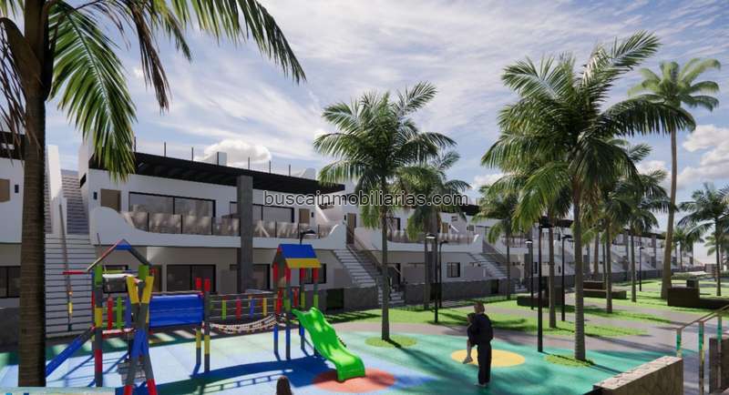 Modernos 94 bungalows y apartamentos de 2 y 3 dormitorios, 2 baños, cocina americana con amplio salón, armarios empotrados.