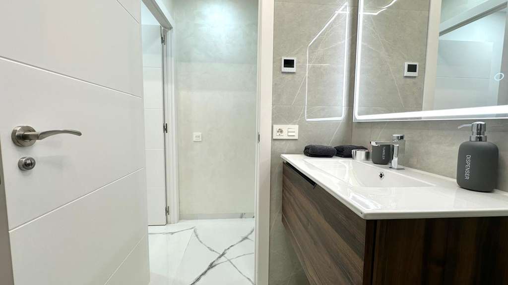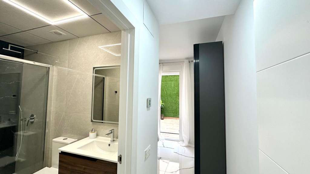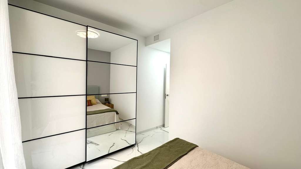 Espectacular planta baja reformada junto a la Playa del Cura Ubicada en segunda línea de la emblemática Playa del Cura, esta vivienda representa una oportunidad única para disfrutar de la comodidad, el diseño y la cercanía al mar. Con una superficie total de 90 m² útiles, esta planta baja totalmente reformada combina a la perfección la modernidad, el confort y la calidad en cada detalle. Desde el primer momento, la propiedad destaca por su excelente reforma integral, donde se ha cuidado al máximo cada aspecto estético y funcional. La vivienda se entrega completamente amueblada y decorada con un estilo moderno y elegante, utilizando materiales de primera calidad. Todos los muebles son nuevos, al igual que los electrodomésticos, lo que permite entrar a vivir sin necesidad de realizar ningún tipo de inversión adicional. La distribución interior es amplia y bien pensada. Dispone de una acogedora cocina americana, equipada con mobiliario contemporáneo y conectada directamente con un luminoso salón-comedor de ambiente abierto. Esta estancia principal goza de una orientación sur, lo que garantiza una excelente luminosidad durante todo el día. Además, cuenta con una gran ventana panorámica equipada con persianas eléctricas, que permite disfrutar de la luz natural y de la brisa mediterránea con total comodidad. El confort está asegurado gracias a su sistema de aire acondicionado centralizado con tecnología ECO, que garantiza una temperatura ideal durante todo el año optimizando el consumo energético. La zona de descanso se compone de dos amplias habitaciones dobles, ambas decoradas con gusto y diseñadas para ofrecer la máxima tranquilidad. La habitación principal dispone de un baño en suite, proporcionando privacidad y funcionalidad. El segundo baño, igualmente moderno y totalmente equipado, da servicio al resto de la vivienda. Como complemento ideal, la vivienda cuenta con un fabuloso patio trasero, un espacio exterior perfecto para relajarse, disfrutar de reuniones familiares o crear un rincón verde y tranquilo en pleno corazón de la ciudad. En definitiva, esta propiedad reúne todas las cualidades que definen una vivienda exclusiva en la costa: ubicación inmejorable, materiales de alta calidad, equipamiento moderno y un diseño pensado para el confort. Situada a escasos metros del mar, es una opción ideal tanto como residencia habitual, vivienda vacacional o inversión segura en una de las zonas más demandadas de Torrevieja.