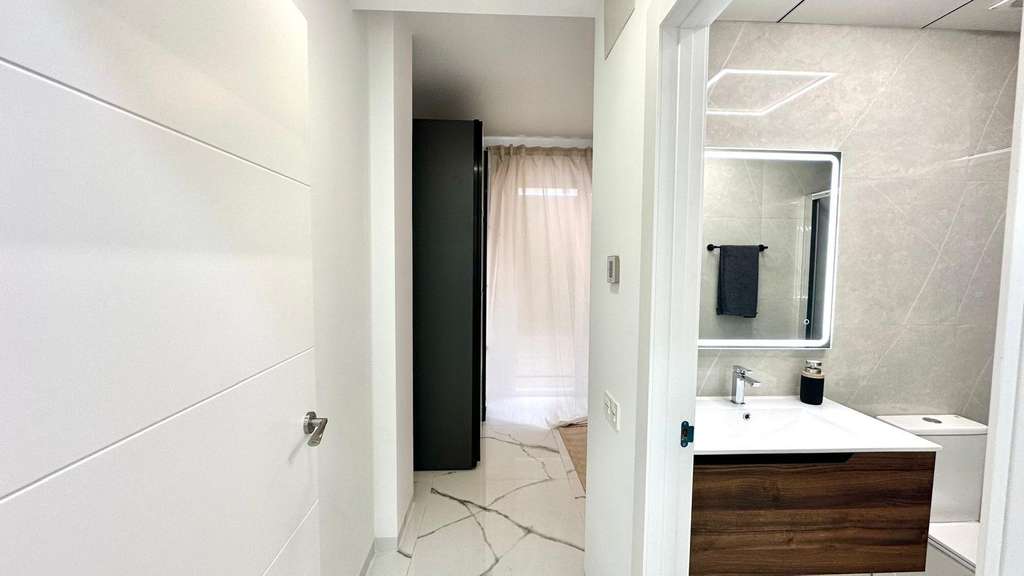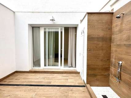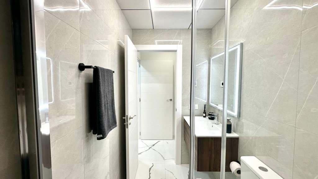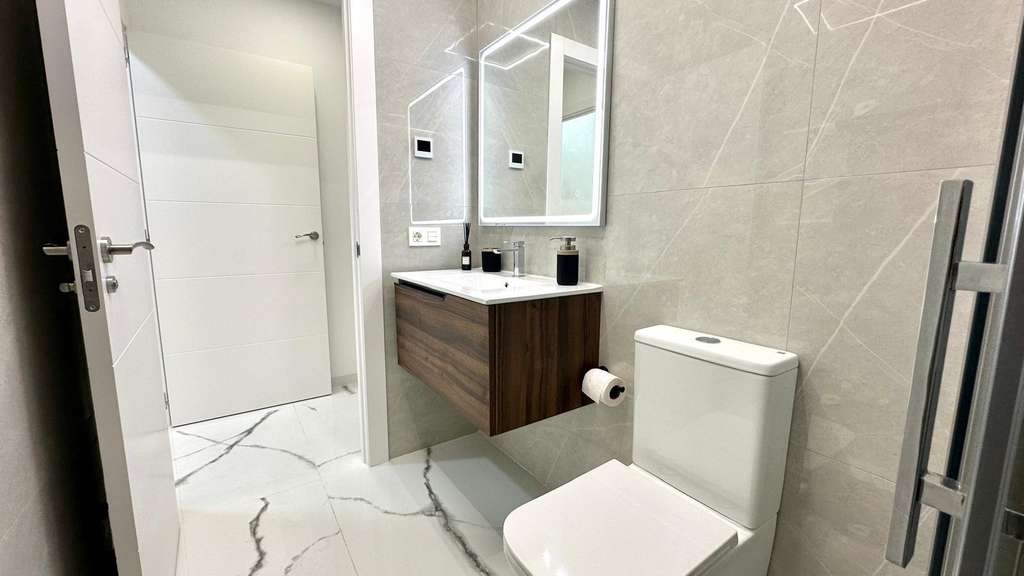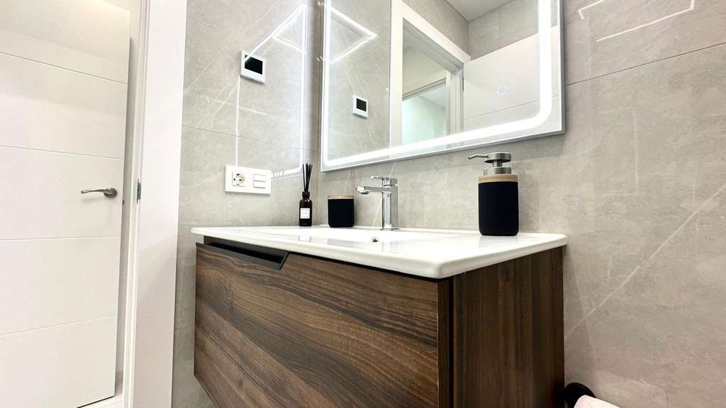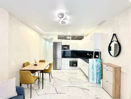 Espectacular planta baja reformada junto a la Playa del Cura Ubicada en segunda línea de la emblemática Playa del Cura, esta vivienda representa una oportunidad única para disfrutar de la comodidad, el diseño y la cercanía al mar. Con una superficie total de 90 m² útiles, esta planta baja totalmente reformada combina a la perfección la modernidad, el confort y la calidad en cada detalle. Desde el primer momento, la propiedad destaca por su excelente reforma integral, donde se ha cuidado al máximo cada aspecto estético y funcional. La vivienda se entrega completamente amueblada y decorada con un estilo moderno y elegante, utilizando materiales de primera calidad. Todos los muebles son nuevos, al igual que los electrodomésticos, lo que permite entrar a vivir sin necesidad de realizar ningún tipo de inversión adicional. La distribución interior es amplia y bien pensada. Dispone de una acogedora cocina americana, equipada con mobiliario contemporáneo y conectada directamente con un luminoso salón-comedor de ambiente abierto. Esta estancia principal goza de una orientación sur, lo que garantiza una excelente luminosidad durante todo el día. Además, cuenta con una gran ventana panorámica equipada con persianas eléctricas, que permite disfrutar de la luz natural y de la brisa mediterránea con total comodidad. El confort está asegurado gracias a su sistema de aire acondicionado centralizado con tecnología ECO, que garantiza una temperatura ideal durante todo el año optimizando el consumo energético. La zona de descanso se compone de dos amplias habitaciones dobles, ambas decoradas con gusto y diseñadas para ofrecer la máxima tranquilidad. La habitación principal dispone de un baño en suite, proporcionando privacidad y funcionalidad. El segundo baño, igualmente moderno y totalmente equipado, da servicio al resto de la vivienda. Como complemento ideal, la vivienda cuenta con un fabuloso patio trasero, un espacio exterior perfecto para relajarse, disfrutar de reuniones familiares o crear un rincón verde y tranquilo en pleno corazón de la ciudad. En definitiva, esta propiedad reúne todas las cualidades que definen una vivienda exclusiva en la costa: ubicación inmejorable, materiales de alta calidad, equipamiento moderno y un diseño pensado para el confort. Situada a escasos metros del mar, es una opción ideal tanto como residencia habitual, vivienda vacacional o inversión segura en una de las zonas más demandadas de Torrevieja.