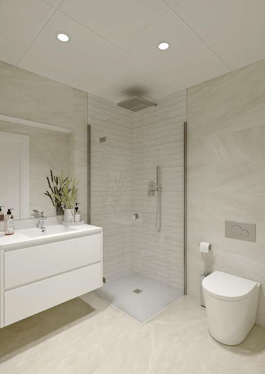 Este nuevo complejo residencial consta de 12 lujosos apartamentos y áticos, que ofrecen unidades de 2 y 3 dormitorios diseñadas para el confort moderno. Cada unidad cuenta con una cocina americana de planta abierta que fluye a la perfección en la sala de estar, creando un espacio ideal para la relajación y el entretenimiento. Los dormitorios disponen de armarios empotrados con cajoneras, mientras que los cuartos de baño cuentan con calefacción por suelo radiante, grifería de alta calidad y mamparas de ducha. Las grandes ventanas de doble acristalamiento con aislamiento térmico y acústico proporcionan un ambiente tranquilo y de temperatura controlada, asegurando que su hogar sea un refugio tranquilo.