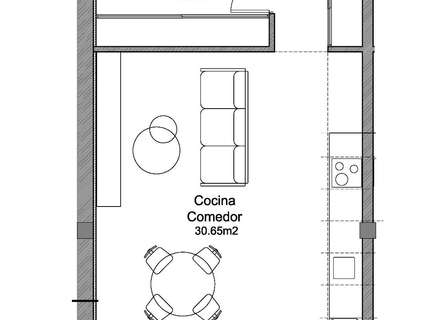 Cocina abierta con muebles y electrodomésticos incluidos