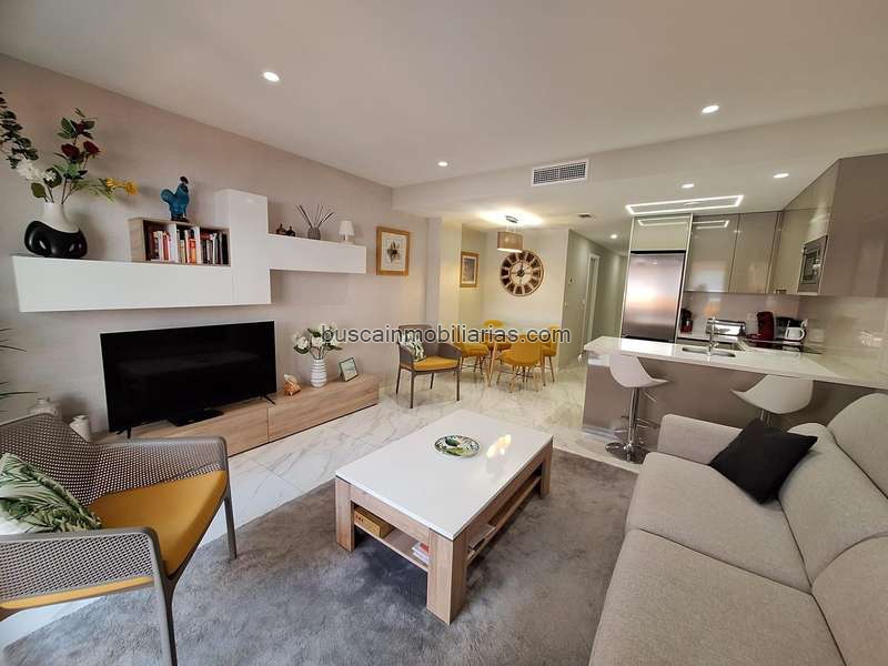 Descubre este magnífico apartamento seminuevo ubicado en el corazón de Torrevieja, dentro del destacado edificio Alegría 11. Con una superficie de 77 m2 y a tan solo550 metros de la playa, esta propiedad es ideal para disfrutar del estilo de vida costero que tanto deseas. El inmueble cuenta con una habitación doble y otra sencilla, además de dos baños completos que ofrecen comodidad y funcionalidad. La cocina está totalmente equipada y destaca por su elegante suelo de mármol así como carpintería exterior en aluminio.