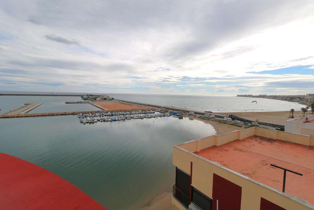 Exclusivo apartamento reformado en primera línea de playa, ubicado en la codiciada zona de Acequion, Torrevieja. Con una superficie de 106 m2, este atractivo inmueble destaca por su diseño moderno y funcional que refleja el estilo mediterráneo ideal para disfrutar del clima soleado. El apartamento cuenta con tres dormitorios dobles exteriores garantizando comodidad y luminosidad natural durante todo el día; además, ofrece un baño completo y un aseo adicional optimizando así su uso diario. Su orientación sur maximiza la entrada de luz solar e invita a gozar vistas directas al mar desde un amplio salón iluminado. La propiedad ha sido meticulosamente renovada preservando sus encantos originales mientras incorpora acabados contemporáneos idóneos tanto para residencia habitual como inversión vacacional. Equipado con puerta acorazada para mayor seguridad y rodeado por todos los servicios necesarios – incluyendo restaurantes, supermercados y áreas recreativas – a solo unos minutos caminando del centro urbano; es realmente una oportunidad única para adquirir tu nuevo hogar frente a las espléndidas playas costeras. Además, incluye acceso a un solarium compartido entre cuatro vecinos que brinda espectaculares vistas al mar.