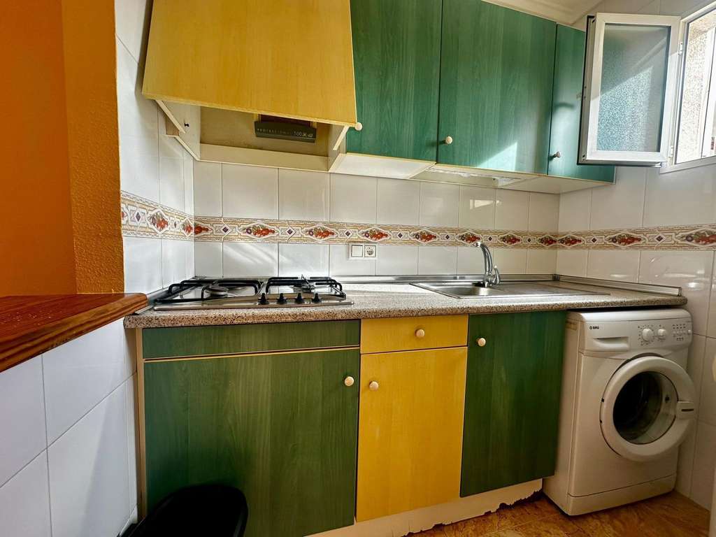 Amplio estudio de 42 m2 construidos.~La propiedad cuenta con un salón luminoso donde se puede colocar una cama y un sofá, y que se conecta a un acogedor balcón donde podrás disfrutar del aire fresco al final del día. El baño está equipado adecuadamente para satisfacer tus necesidades diarias.~~Además, la urbanización ofrece acceso a una piscina comunitaria.~El estudio está en la 1ra planta de un edificio que dispone de ascensor.~Cerca hay todo tipo de servicios: tiendas, supermercado, parque, farmacia, bares, restaurantes y colegios.~Está a tan solo 900 m del mar de la Playa del Cura