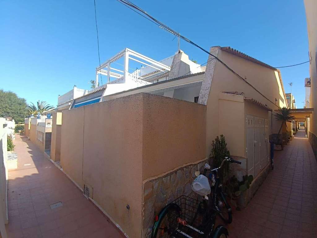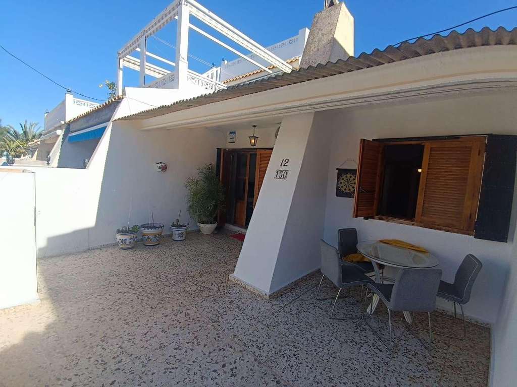 Bonito bungalow en esquina de 2 dormitorios sin vecinos arriba.~Situado en Orihuela Costa, Los almendros, urbanizacion la Chismosa.~Vivienda de 55m y jardin de 12m.~En muy buen estado.~Conjunto residencial privado en un entorno muy tranquilo.~2km de distancia alas playas.~ATENCION: Se ha propuesto en junta de comunidad una derrama para construir una piscina comunitaria y le daría mas valor a la vivienda.