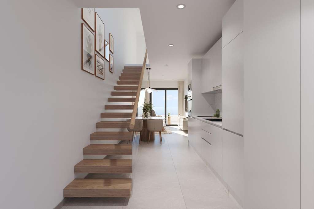 Esta exclusiva promoción nueva consta de solo 12 apartamentos y áticos de 1 o 3 dormitorios, diseñados para ofrecer comodidad, funcionalidad y estilo contemporáneo. Los apartamentos de las plantas intermedias cuentan con amplias terrazas, mientras que los áticos disfrutan de un solárium privado adicional, ideal para tomar el sol o comer al aire libre. Todas las viviendas incluyen una cocina abierta conectada con el salón-comedor, lo que crea interiores luminosos y acogedores. Los dormitorios cuentan con armarios empotrados y los baños están totalmente equipados con muebles, espejos y mamparas de ducha. Hay plazas de aparcamiento opcionales disponibles con un coste adicional.