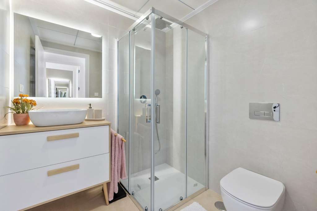 Las residencias constan de 2 dormitorios y 2 baños, con la opción de un tercer dormitorio para adaptarse a sus necesidades. Cada apartamento ofrece espectaculares vistas de la laguna rosa de Torrevieja, creando una experiencia única donde la naturaleza se convierte en una parte integral de su vida diaria.
