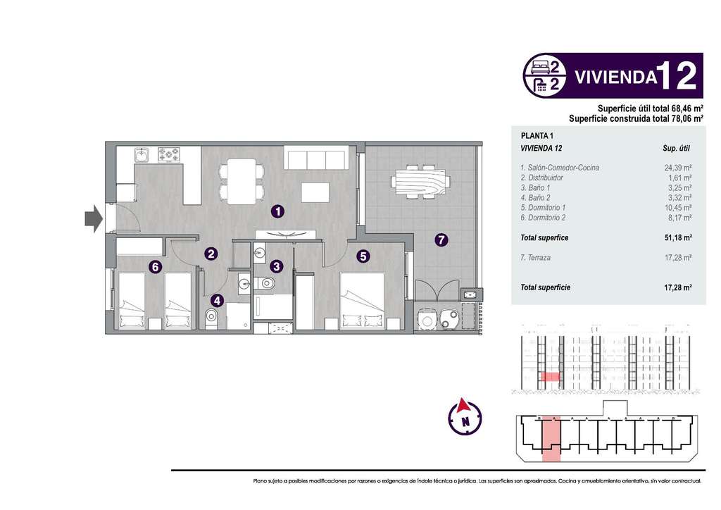 Puede elegir entre lujosos apartamentos de 2 dormitorios y 2 baños, áticos de 3 dormitorios y 2 baños con solarium privado y apartamentos de 2 dormitorios y 2 baños en planta baja con jardín privado.