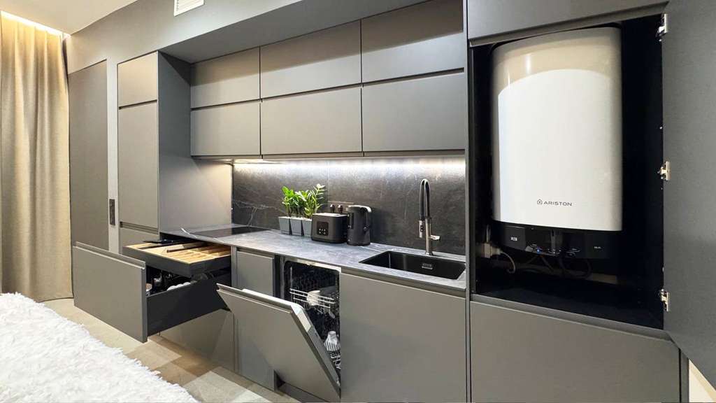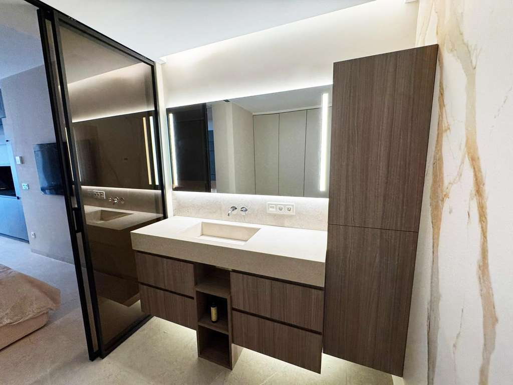 Elegante apartamento de 1 dormitorio de 45 m² en el corazón de Torrevieja, a solo 250 metros de la Playa de Los Locos. El apartamento ofrece un salón luminoso con ventanas panorámicas de suelo a techo, una cocina moderna totalmente equipada y un dormitorio cómodo con armario empotrado y acabados elegantes. El baño cuenta con ducha tipo lluvia, lavabo de piedra y suelo radiante. Control de climatización, iluminación LED y una terraza privada completan este sofisticado refugio mediterráneo, ideal como segunda residencia o vivienda permanente bajo el sol español.