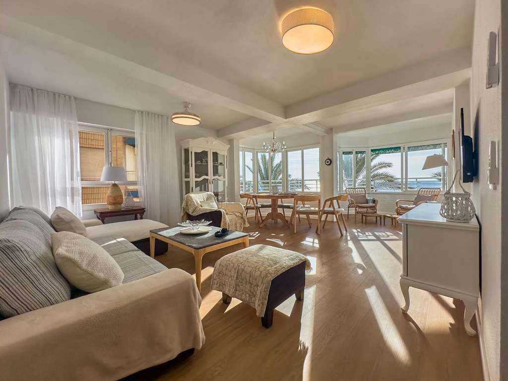 A la venta este gran apartamento con impresionantes vistas al mar. En primera línea de la playa del cura, en Torrevieja. Es la playa más concurrida y con paseo Marítimo, donde hay piscinas naturales de mar. El edificio tiene conserje y está vigilado durante 24h. Situado a pocos metros del muelle donde se puede caminar y disfrutar de paseos rodeados por el mar. Dispone de 3 dormitorios (dos dobles con camas grandes de 160x200 y con grandes compartimentos de almacenamiento y 1 cama litera en la habitación más pequeña), 2 baños con amplias duchas, cocina americana totalmente equipada con isla y todos los electrodomésticos totalmente nuevos, amplio lavadero, el apartamento está recién reformado (instalaciones eléctricas, agua y alcantarillado totalmente cambiados. Aires acondicionados frío y calor instalados en cada dormitorio, tiene TV e Internet, muebles de alta calidad a estrenar. 2 apartamentos en cada piso, con 2 ascensores independientes. Gran oportunidad en conseguir un lujoso apartamento en una zona única con vistas inmejorables ¿programamos su visita?
