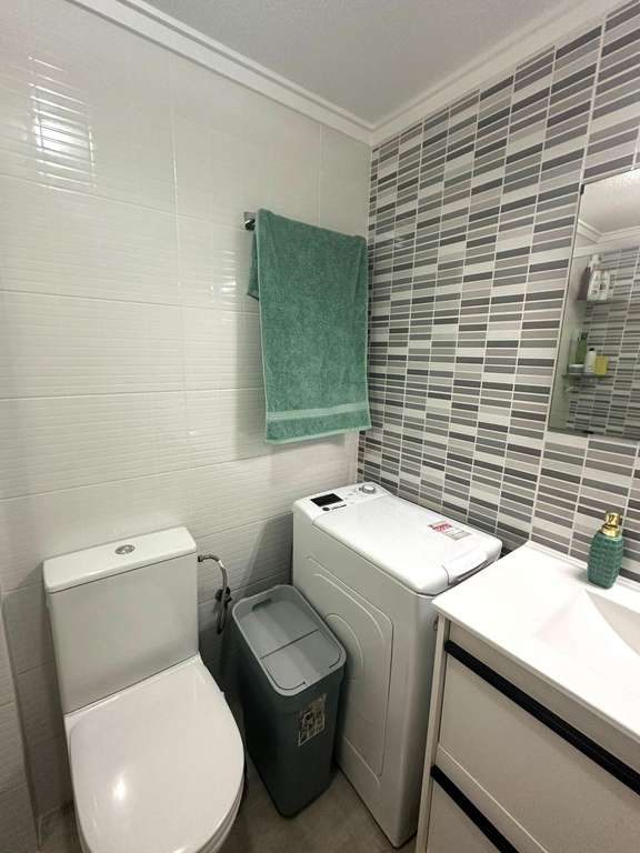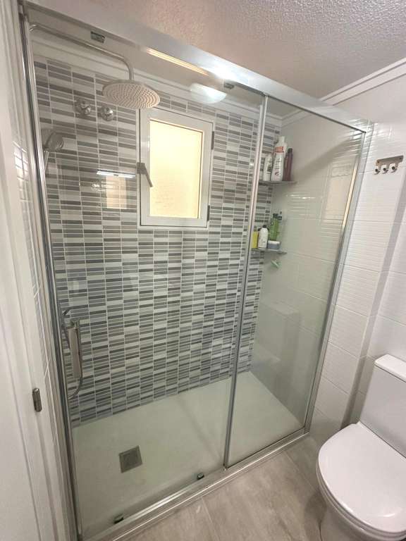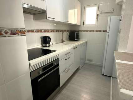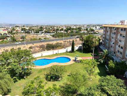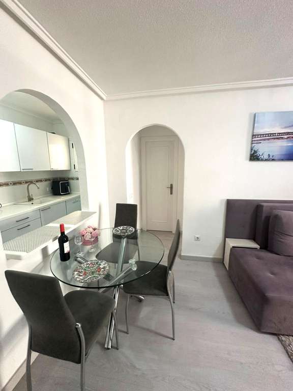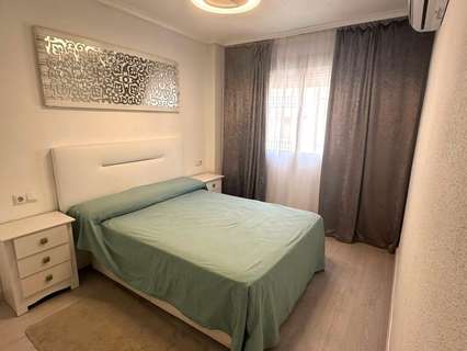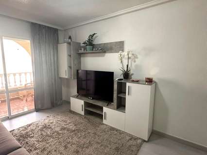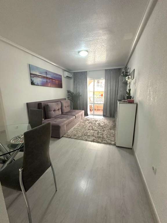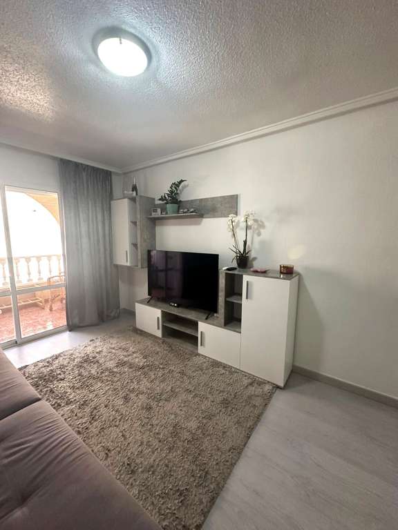 Moderno piso de 2 dormitorios con terraza privada, piscina y jardin en Torrevieja Al entrar en este moderno piso reformado, lo primero que llama la atención es la luz natural que inunda cada rincón. Su orientación sur convierte el salón en un espacio cálido y luminoso durante todo el día, ideal para disfrutar de momentos de relax o para compartir con amigos. Desde aquí, se accede directamente a una amplia terraza privada, perfecta para desayunar al sol, leer un buen libro o contemplar el atardecer con una copa de vino. La vivienda cuenta con dos dormitorios. El dormitorio principal ofrece un ambiente acogedor, con armario empotrado que aporta comodidad. El segundo dormitorio, igualmente luminoso, es ideal como habitación de invitados, despacho o cuarto infantil. La cocina, completamente equipada, se integra perfectamente con el estilo moderno del piso, ofreciendo un espacio práctico y estéticamente agradable. El baño ha sido renovado con materiales de alta calidad, combinando elegancia y confort. Pero sin duda, uno de los mayores atractivos de este piso es su entorno. Forma parte de una cuidada urbanización con piscina comunitaria y amplias zonas ajardinadas, donde se respira tranquilidad. Un rincón ideal para quienes buscan calidad de vida sin renunciar a las comodidades de un hogar moderno. UBICACIÓN: Torrevieja se encuentra en la provincia de Alicante (Costa Blanca). Es famosa por su clima mediterráneo y su costa. No podemos olvidar sus paseos marítimos donde podemos encontrar algunos restaurantes a lo largo de las playas de arena fina. Además, cuenta con excelentes playas como la Playa de los Náufragos, la Playa de los Locos y la Playa de la Mata. Por lo tanto, se considera una localidad turística destacable donde el medio ambiente ocupa un lugar importante como reclamo turístico. Además, podemos encontrar numerosos centros comerciales (Habaneras, La Zenia Boulevard), campos de golf, centros deportivos, hospitales (como el Hospital Universitario de Torrevieja) y aeropuertos como el Aeropuerto de Alicante (a 35 km) y el Aeropuerto Internacional de la Región de Murcia (a 43 km). DISTANCIA AL MAR: 600m COMUNIDAD: 360 € IBI: 220 € Si tiene alguna pregunta, no dude en ponerse en contacto con nosotros!