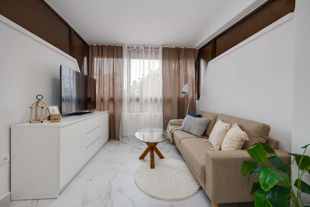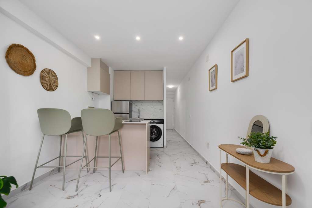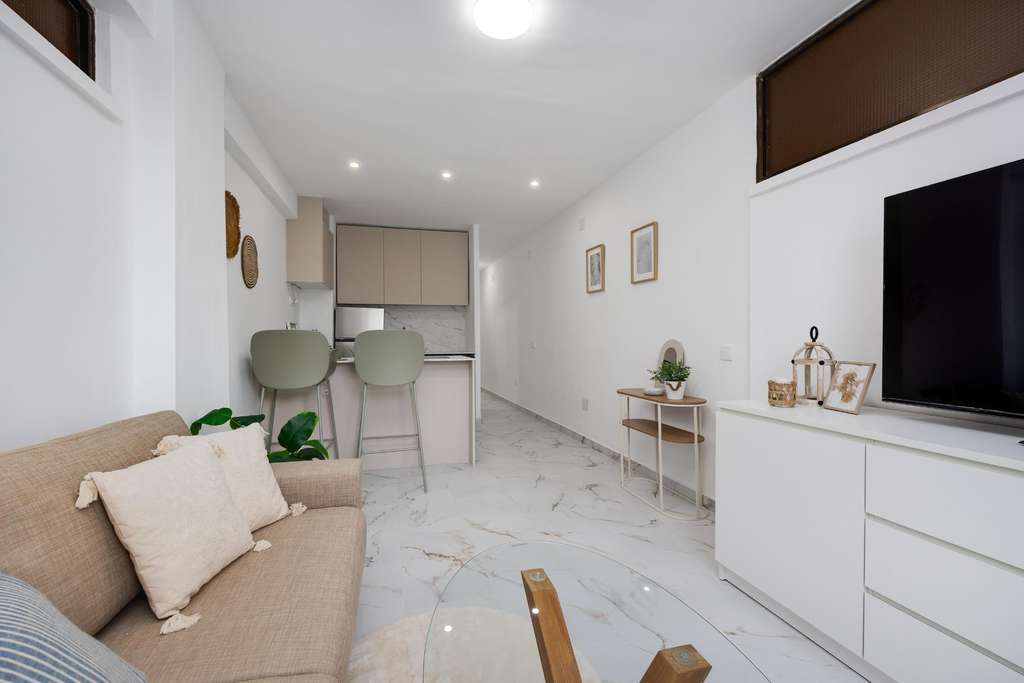 Exclusivo apartamento situado en primera línea de playa, con maravillosas vistas despejadas a un jardín y vistas laterales al mar. Su ubicación es inmejorable, a tan solo 50 metros del mar, rodeado de bonitas playas y calas que convierten esta propiedad en una opción perfecta tanto como vivienda habitual, segunda residencia o inversión. La vivienda se encuentra en planta baja, aunque por su altura se percibe prácticamente como una primera planta, ofreciendo mayor privacidad y luminosidad. Se distribuye en: un dormitorio doble, un baño completo con moderno plato de ducha y un amplio salón-comedor con cocina abierta, totalmente equipada. El apartamento ha sido reformado íntegramente, con un diseño actual y funcional, y se encuentra para estrenar, listo para entrar a vivir. Una oportunidad única de disfrutar del mar, la tranquilidad y el confort en una de las mejores ubicaciones de la zona.
