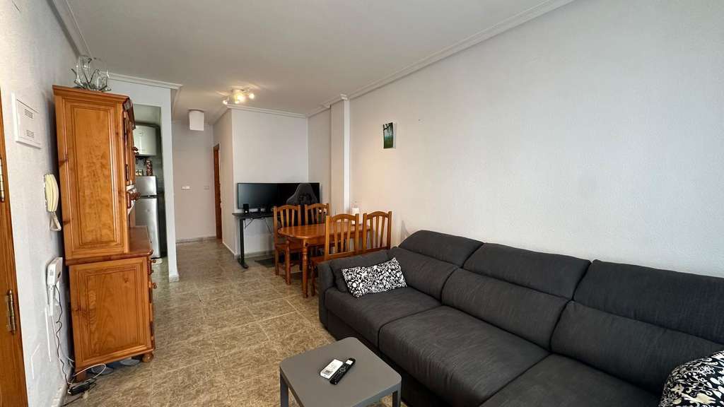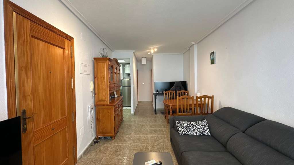 Este apartamento de una habitación y un baño, situado en pleno centro de Torrevieja, se presenta como una opción ideal para quienes buscan una vivienda cómoda, práctica y lista para entrar a vivir, sin preocupaciones y con todo lo necesario desde el primer día. Su ubicación, en el corazón de la ciudad, permite disfrutar al máximo del ambiente urbano, de los servicios cercanos y de la vida mediterránea, convirtiéndolo en una excelente alternativa tanto como residencia habitual como para segunda vivienda o inversión enfocada al alquiler. Al encontrarse en una de las zonas más demandadas de Torrevieja, combina a la perfección la tranquilidad del hogar con la proximidad a las principales zonas de ocio, comercios y puntos de interés. Nada más cruzar la puerta de entrada, se percibe la sensación de hogar acogedor y bien cuidado. El hecho de que se venda amueblado facilita enormemente la decisión de compra, ya que evita tener que preocuparse por traslados, nuevas compras o proyectos a largo plazo: simplemente se entra con las maletas y se empieza a disfrutar. El mobiliario aporta calidez al ambiente y permite imaginar rápidamente cómo será el día a día en la vivienda, tanto si se quiere utilizar como refugio personal junto al mar como si se piensa destinar al alquiler para obtener rentabilidad. Esta inmediatez, el “listo para vivir”, es uno de sus grandes atractivos, especialmente para quienes buscan una solución rápida, práctica y sin complicaciones. La cocina independiente aporta un valor añadido muy importante en un apartamento de estas características. A diferencia de los típicos espacios de cocina integrada en el salón, aquí se dispone de una estancia separada, lo que permite cocinar con comodidad, tener todos los utensilios bien ordenados y mantener el resto de la vivienda libre de olores y ruidos. Esta distribución hace que el apartamento se sienta más amplio y funcional, generando una clara separación entre las zonas de descanso y las de trabajo doméstico. Para quienes disfrutan de cocinar, esta cocina resulta un auténtico pequeño centro de operaciones, donde preparar desde un café rápido por la mañana hasta una cena especial para amigos sin invadir el espacio del salón. El salón se convierte en el corazón social de la vivienda, un espacio en el que relajarse después de un día de trabajo, ver una película, leer tranquilamente o recibir visitas. Al estar conectado con la terraza, la estancia gana en luminosidad y ventilación, creando un ambiente agradable durante todo el año. Es muy fácil imaginar este salón decorado con estilo propio, con un sofá cómodo, una mesa auxiliar, algún detalle decorativo mediterráneo y quizá un mueble de televisión o una estantería con libros y recuerdos de viajes. Aunque se trate de un apartamento de una sola habitación, la correcta distribución de los espacios permite disfrutar de una sensación de amplitud y comodidad. La terraza es sin duda uno de los puntos fuertes de esta vivienda. Este rincón al aire libre se convierte en un auténtico oasis dentro del centro de la ciudad, un lugar donde desconectar, tomar el aire y disfrutar del clima suave de Torrevieja. Aquí se puede colocar una pequeña mesa con un par de sillas para desayunar tranquilamente al sol, trabajar con el portátil mientras corre la brisa o compartir una cena al aire libre en las noches de verano. También puede ser el espacio perfecto para crear un pequeño jardín urbano, con plantas en macetas, flores y algún detalle decorativo que aporte color y personalidad. Tener terraza en pleno centro es un privilegio que marca la diferencia en el día a día. El dormitorio, al ser independiente, ofrece la privacidad necesaria para descansar de verdad. Es el espacio íntimo de la vivienda, donde se puede crear un ambiente relajante y personal, con colores suaves, textiles agradables y una iluminación adecuada.