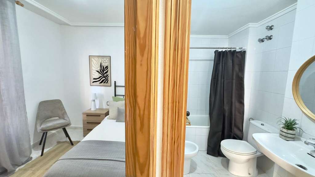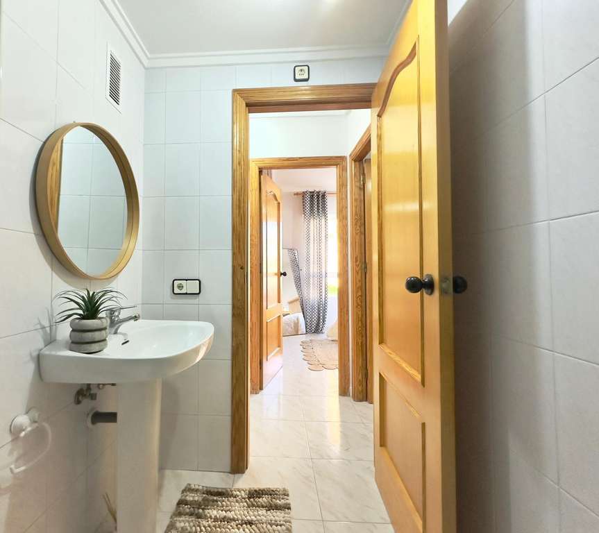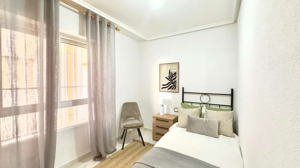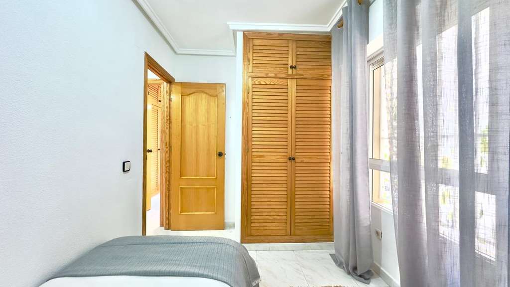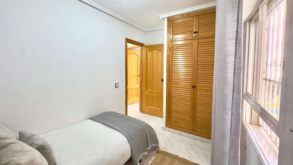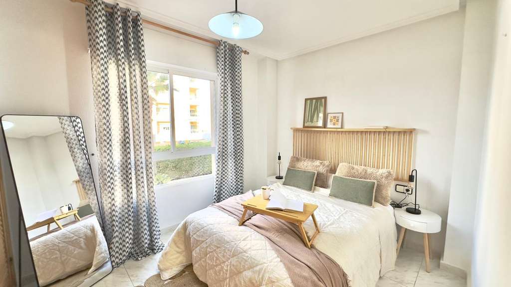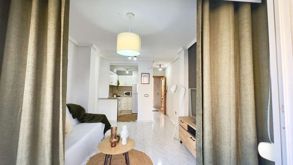 Preciosa Vivienda en Primera Planta Reformada con Diseño Moderno – Nueva Torrevieja, Piscina Comunitaria y Terraza Acristalada Te presentamos esta fantástica vivienda ubicada en la codiciada zona de Nueva Torrevieja, en una primera planta, recientemente reformada por completo, con un elegante y actual diseño moderno, lista para entrar a vivir y disfrutar. La propiedad destaca por su excelente distribución y sus detalles de calidad. Cuenta con 2 habitaciones, ideales tanto para familias como para recibir invitados o disponer de un despacho o zona de trabajo. El cuarto de baño, equipado con bañera, combina comodidad y funcionalidad. La zona de día ofrece un ambiente diáfano y acogedor, donde el salón-comedor y la cocina se integran perfectamente en un mismo espacio abierto, lo que proporciona mayor amplitud y luminosidad. La cocina, de estilo moderno y actual, conecta de forma directa con la terraza acristalada, un espacio versátil y protegido, ideal para disfrutar durante todo el año. Desde la terraza se pueden apreciar unas agradables vistas hacia la piscina comunitaria, lo que aporta un plus de tranquilidad y bienestar. La vivienda, con orientación oeste, garantiza sol y luz natural durante las tardes, lo que la hace especialmente acogedora. Además, la urbanización ofrece a sus residentes el disfrute de una piscina comunitaria, ideal para refrescarse en los meses de verano, relajarse y disfrutar de un entorno agradable y seguro. Situada en la tranquila zona de Nueva Torrevieja, la propiedad se encuentra cerca de todos los servicios: supermercados, centros médicos, farmacias, restaurantes y transporte público, y a pocos minutos en coche de las playas y del centro de Torrevieja. Una vivienda ideal tanto como residencia habitual como para inversión vacacional, con todo lo que necesitas: diseño moderno, amplios espacios, piscina comunitaria y terraza acristalada.