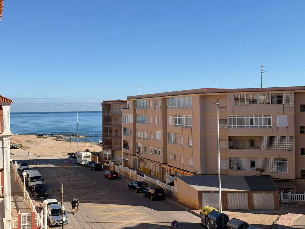 Acogedor apartamento con solarium, piscina y jardín en La Mata Ubicado en la tercera planta de un edificio sin ascensor, ofrece un auténtico ambiente costero con unas vistas espectaculares al mar y a las salinas. La vivienda cuenta con un luminoso salón, una cocina práctica y un dormitorio confortable. Su gran solárium privado es el verdadero protagonista: un espacio perfecto para tomar el sol, relajarse o disfrutar de cenas al aire libre. El apartamento se encuentra dentro de una cuidada urbanización que ofrece piscina comunitaria y zonas ajardinadas, creando un entorno agradable y seguro. Y lo mejor de todo: la playa está a solo unos pasos, haciendo que cada día pueda sentirse como unas vacaciones. Una oportunidad perfecta para vivir cerca del mar o disfrutar de una escapada junto a la costa. UBICACIÓN: En La Mata podemos encontrar el famoso paseo marítimo a lo largo de la playa donde podemos comer en sus famosos «chiringuitos» y algunos restaurantes. Detrás de la playa hay unas preciosas dunas de arena, el popular «Parque del Molino del agua». También podemos encontrar centros comerciales como el centro comercial Parquemar (a 500 m), el centro comercial Habaneras (a 4 km) y La Zenia Boulevard (a 12 km) y centros de salud como el centro de salud La Mata (a 500 m). El hospital más cercano es el Hospital Quirónsalud Torrevieja (a 8 km) y a pocos minutos se encuentra el Hospital Universitario de Torrevieja. También está cerca de aeropuertos como el de Alicante (a 35 km) y el Aeropuerto Internacional de la Región de Murcia (a 43 km). DISTANCIA AL MAR: 50m COMUNIDAD: 150 € por 3 meses IBI: 180 € Si tiene alguna pregunta, no dude en ponerse en contacto con nosotros!