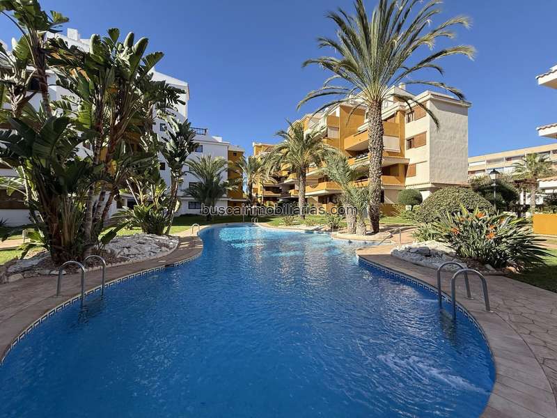 Descubre este espectacular piso en la urbanización La Entrada, situada entre Torrevieja y Orihuela Costa. Este encantador apartamento de 152 m2 construidos se encuentra en planta primera y cuenta con una gran terraza corrida que ofrece vistas a los hermosos jardines comunitarios, perfectos para disfrutar del cálido clima mediterráneo. Con dos amplios dormitorios cada uno con cuarto de baño en suite, esta vivienda también incluye una cocina abierta al luminoso salón-comedor y armarios empotrados que optimizan el espacio disponible. La urbanización cerrada proporciona un entorno seguro y tranquilo ideal para vivir todo el año o como segunda residencia. Disfruta de múltiples piscinas rodeadas por grandes zonas ajardinadas donde podrás relajarte bajo el sol español durante tus momentos libres. Su ubicación es inmejorable: estarás a solo unos minutos caminando de la playa y tendrás fácil acceso a centros comerciales así como diversas tiendas, bares y restaurantes locales. Este excepcional piso está preparado para entrar a vivir; vendiéndose completamente amueblado e incluyendo electrodomésticos modernos además posee acabados premium tales como suelos de mármol elegantes junto con aire acondicionado instalado ya presente por toda la propiedad garantizando confort incluso durante los días más calurosos del verano mediterráneo.Con orientación oeste disfrutará luz natural abundante todos los días creando un ambiente acogedor e iluminado. Cualquier persona interesada encontrará aquí no sólo comodidad sino funcionalidad perfecta dentro su nuevo hogar soñado ¡No deje pasar esta oportunidad única! Vivir cerca mar nunca fue tan accesible.