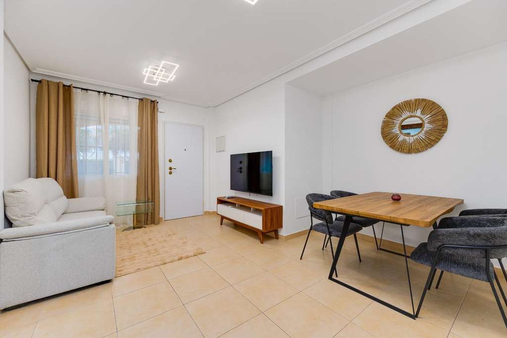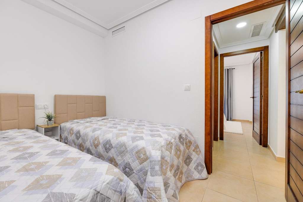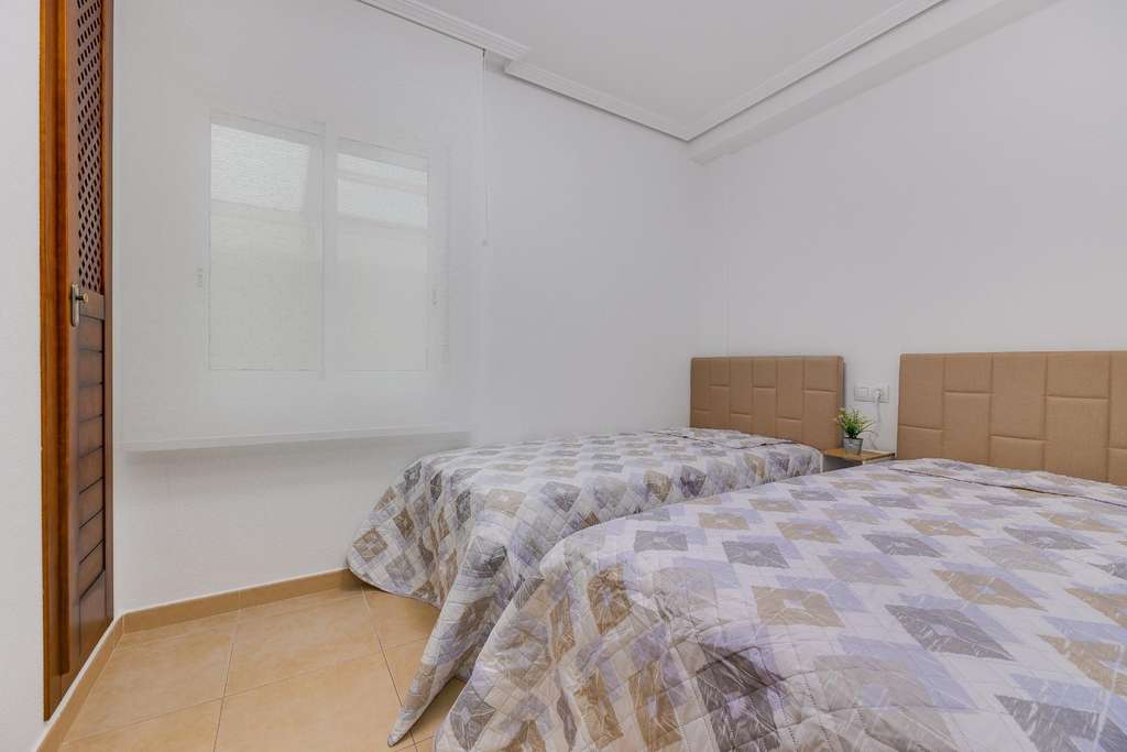 Se vende bungalow en planta baja en Torrevieja – Zona Aguas Nuevas (Urb. Altos de la Bahía)~Magnífico bungalow en planta baja con vistas despejadas al parque, ubicado en una de las zonas más demandadas de Torrevieja. La vivienda cuenta con 2 dormitorios, 1 baño, luminoso salón-comedor, amplia cocina y patio interior, ofreciendo espacios cómodos y bien distribuidos.~Dispone de una terraza de 26 m2, ideal para disfrutar del clima mediterráneo gracias a su orientación oeste. La vivienda ha sido reformada, se encuentra en excelente estado y cuenta con aire acondicionado central para mayor confort durante todo el año.~Incluye plaza de aparcamiento en el precio y forma parte de una urbanización con piscina comunitaria. Rodeada de todos los servicios necesarios: supermercados, transporte, restaurantes y zonas de ocio. La playa se encuentra a tan solo 500 metros.~Ideal tanto como vivienda habitual, segunda residencia o inversión para alquiler vacacional.