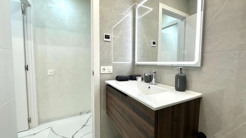 Espectacular planta baja reformada junto a la Playa del Cura Ubicada en segunda línea de la emblemática Playa del Cura, esta vivienda representa una oportunidad única para disfrutar de la comodidad, el diseño y la cercanía al mar. Con una superficie total de 90 m² útiles, esta planta baja totalmente reformada combina a la perfección la modernidad, el confort y la calidad en cada detalle. Desde el primer momento, la propiedad destaca por su excelente reforma integral, donde se ha cuidado al máximo cada aspecto estético y funcional. La vivienda se entrega completamente amueblada y decorada con un estilo moderno y elegante, utilizando materiales de primera calidad. Todos los muebles son nuevos, al igual que los electrodomésticos, lo que permite entrar a vivir sin necesidad de realizar ningún tipo de inversión adicional. La distribución interior es amplia y bien pensada. Dispone de una acogedora cocina americana, equipada con mobiliario contemporáneo y conectada directamente con un luminoso salón-comedor de ambiente abierto. Esta estancia principal goza de una orientación sur, lo que garantiza una excelente luminosidad durante todo el día. Además, cuenta con una gran ventana panorámica equipada con persianas eléctricas, que permite disfrutar de la luz natural y de la brisa mediterránea con total comodidad. El confort está asegurado gracias a su sistema de aire acondicionado centralizado con tecnología ECO, que garantiza una temperatura ideal durante todo el año optimizando el consumo energético. La zona de descanso se compone de dos amplias habitaciones dobles, ambas decoradas con gusto y diseñadas para ofrecer la máxima tranquilidad. La habitación principal dispone de un baño en suite, proporcionando privacidad y funcionalidad. El segundo baño, igualmente moderno y totalmente equipado, da servicio al resto de la vivienda. Como complemento ideal, la vivienda cuenta con un fabuloso patio trasero, un espacio exterior perfecto para relajarse, disfrutar de reuniones familiares o crear un rincón verde y tranquilo en pleno corazón de la ciudad. En definitiva, esta propiedad reúne todas las cualidades que definen una vivienda exclusiva en la costa: ubicación inmejorable, materiales de alta calidad, equipamiento moderno y un diseño pensado para el confort. Situada a escasos metros del mar, es una opción ideal tanto como residencia habitual, vivienda vacacional o inversión segura en una de las zonas más demandadas de Torrevieja.