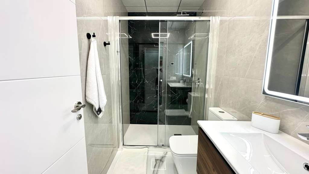 Espectacular planta baja reformada junto a la Playa del Cura Ubicada en segunda línea de la emblemática Playa del Cura, esta vivienda representa una oportunidad única para disfrutar de la comodidad, el diseño y la cercanía al mar. Con una superficie total de 90 m² útiles, esta planta baja totalmente reformada combina a la perfección la modernidad, el confort y la calidad en cada detalle. Desde el primer momento, la propiedad destaca por su excelente reforma integral, donde se ha cuidado al máximo cada aspecto estético y funcional. La vivienda se entrega completamente amueblada y decorada con un estilo moderno y elegante, utilizando materiales de primera calidad. Todos los muebles son nuevos, al igual que los electrodomésticos, lo que permite entrar a vivir sin necesidad de realizar ningún tipo de inversión adicional. La distribución interior es amplia y bien pensada. Dispone de una acogedora cocina americana, equipada con mobiliario contemporáneo y conectada directamente con un luminoso salón-comedor de ambiente abierto. Esta estancia principal goza de una orientación sur, lo que garantiza una excelente luminosidad durante todo el día. Además, cuenta con una gran ventana panorámica equipada con persianas eléctricas, que permite disfrutar de la luz natural y de la brisa mediterránea con total comodidad. El confort está asegurado gracias a su sistema de aire acondicionado centralizado con tecnología ECO, que garantiza una temperatura ideal durante todo el año optimizando el consumo energético. La zona de descanso se compone de dos amplias habitaciones dobles, ambas decoradas con gusto y diseñadas para ofrecer la máxima tranquilidad. La habitación principal dispone de un baño en suite, proporcionando privacidad y funcionalidad. El segundo baño, igualmente moderno y totalmente equipado, da servicio al resto de la vivienda. Como complemento ideal, la vivienda cuenta con un fabuloso patio trasero, un espacio exterior perfecto para relajarse, disfrutar de reuniones familiares o crear un rincón verde y tranquilo en pleno corazón de la ciudad. En definitiva, esta propiedad reúne todas las cualidades que definen una vivienda exclusiva en la costa: ubicación inmejorable, materiales de alta calidad, equipamiento moderno y un diseño pensado para el confort. Situada a escasos metros del mar, es una opción ideal tanto como residencia habitual, vivienda vacacional o inversión segura en una de las zonas más demandadas de Torrevieja.