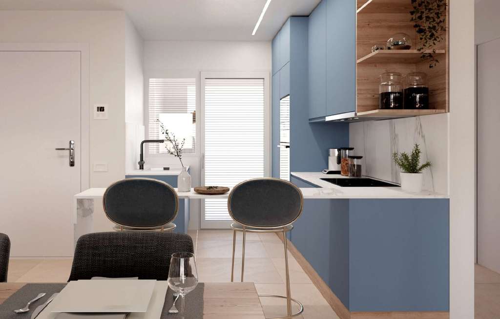 Las viviendas están equipadas con una serie de características que garantizan un alto nivel de confort. Todas las propiedades incluyen aire acondicionado, calefacción por suelo radiante y persianas eléctricas, asegurando un ambiente agradable en cualquier época del año. Los interiores están acabados con suelos de cerámica y gres porcelánico, combinando durabilidad y estilo. Las cocinas están completamente equipadas con electrodomésticos modernos, y los armarios empotrados ofrecen un almacenamiento eficiente. Además, las viviendas vienen amuebladas y cuentan con videoportero para mayor seguridad. El lujo se completa con la inclusión de un jacuzzi en algunas unidades, proporcionando un espacio privado para la relajación.
