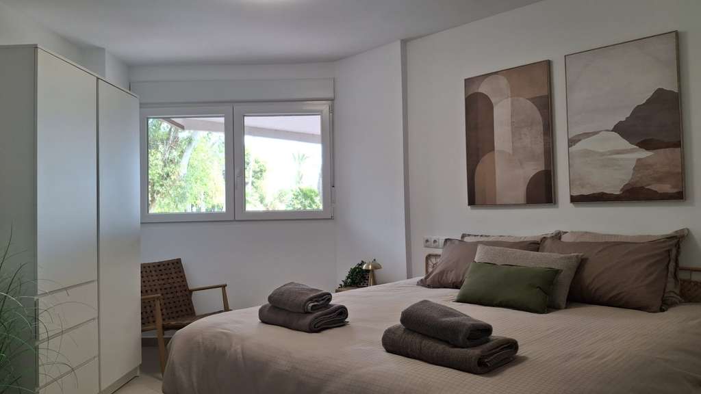 Apartamento de 2 dormitorios y 2 baños completamente reformado, ubicado a tan solo 50 metros de la Playa del Acequión en Torrevieja. La vivienda ha sido renovada con materiales de alta calidad y un diseño contemporáneo que destaca por sus azulejos modernos, una cuidada decoración y un estilo elegante que crea un ambiente acogedor y funcional. El salón se integra con una innovadora cocina americana con isla central, totalmente equipada, ofreciendo un espacio abierto ideal para disfrutar del día a día. El apartamento se vende completamente amueblado y equipado, listo para entrar a vivir. Dispone de aire acondicionado por conductos, electrodomésticos, televisor y sistema de videoportero con portero automático, garantizando confort y seguridad. Uno de los grandes atractivos de esta propiedad son sus agradables vistas a una zona verde, que aportan tranquilidad y una sensación única de amplitud. Su ubicación privilegiada permite disfrutar de la playa de arena a tan solo unos pasos, siendo ideal tanto como vivienda habitual, segunda residencia o inversión. Una oportunidad perfecta para quienes buscan calidad, ubicación y vistas en una de las zonas más demandadas de Torrevieja.