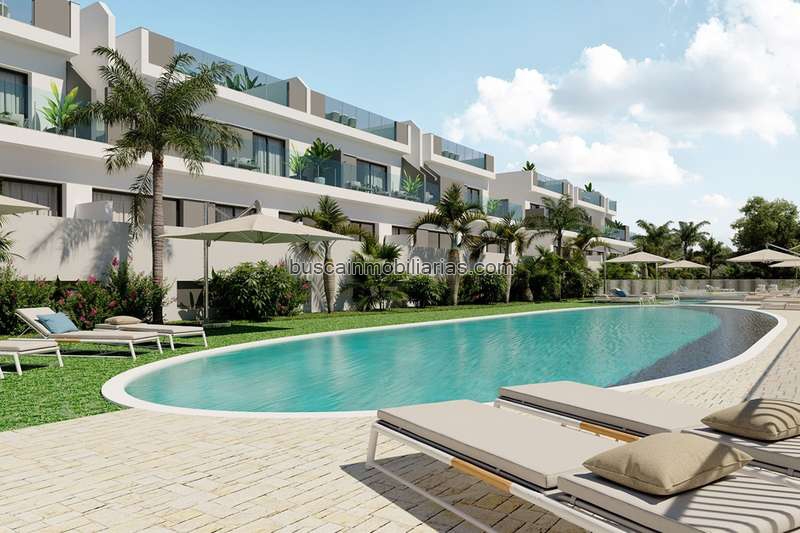 Costa Blanca Eiendom presenta la tercera fase de este proyecto, compuesto por 7 apartamentos adosados en planta baja con terraza privada y 6 apartamentos en planta alta tipo ático con solárium privado. Todas las viviendas disponen de 2 dormitorios, algunas con 2 o 3 baños, y están orientadas con vistas a la piscina.