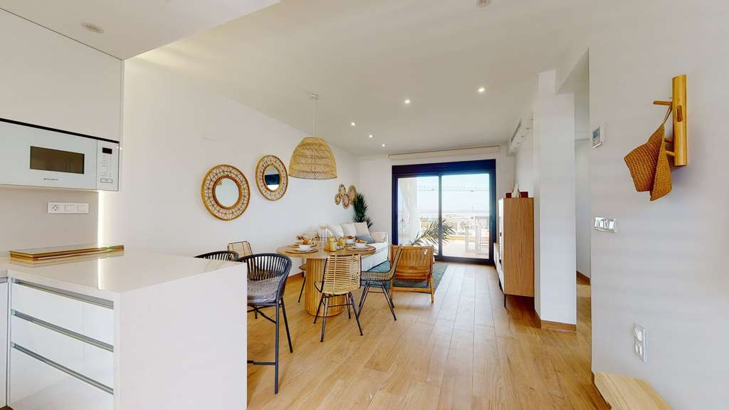 Estos modernos Penthouses (bungalows) de 2 dormitorios, 2 baños, 1 terraza y un gran solárium forman parte de un hermoso resort que contará con un total de 136 bungalows. Además, en el precio también está incluido un garaje subterráneo y tienes la opción de instalar un trastero y posiblemente también un punto de carga para un coche eléctrico, si lo deseas. El complejo dispone de 3 piscinas comunitarias y 3 zonas con jacuzzis para un mayor relax. También encontrarás un campo de pádel, una zona dedicada a la biomecánica y la gimnasia y un mini golf para disfrutar en familia.